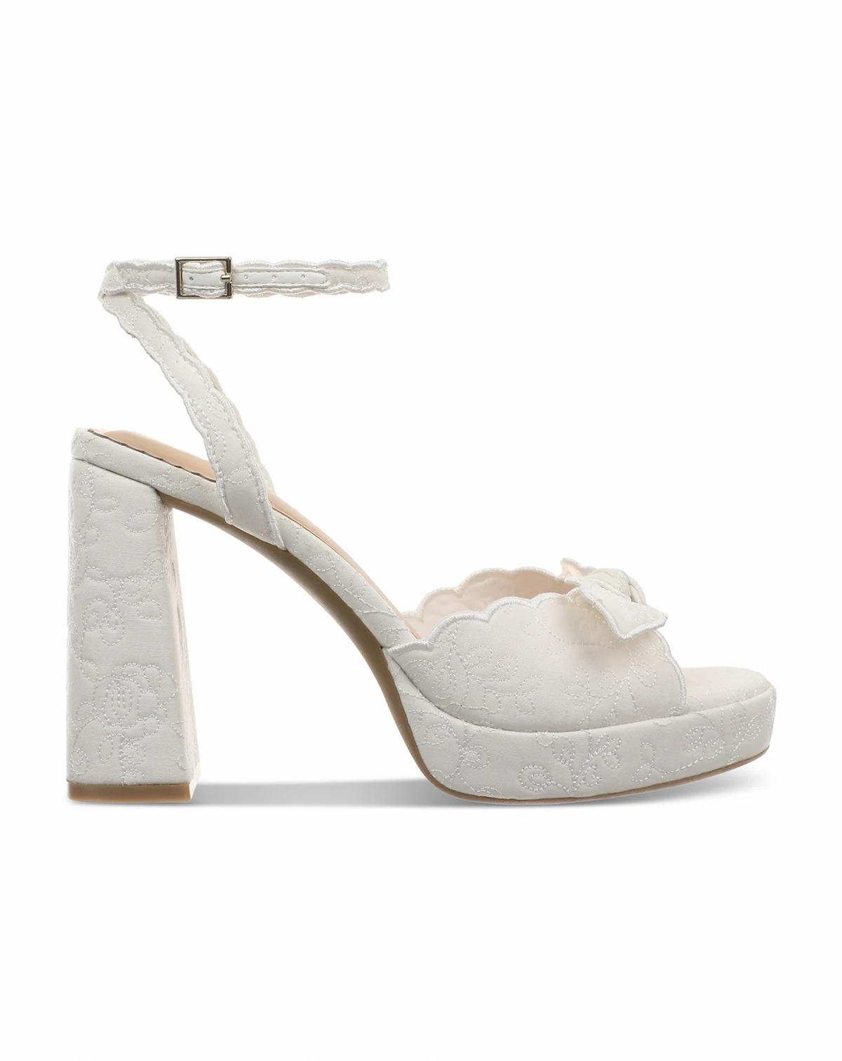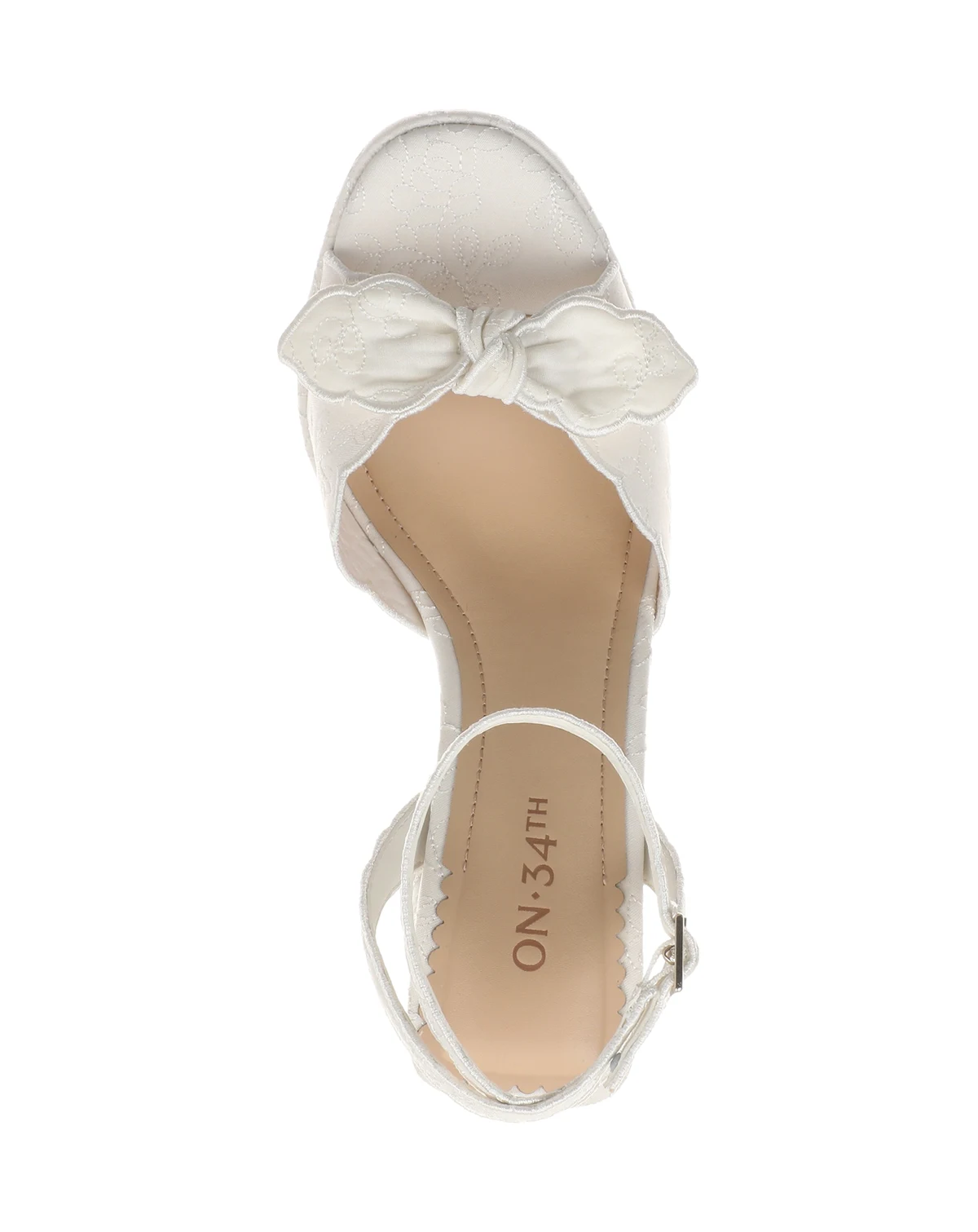 Scalloped trim and bows bring a touch of feminine intrigue to retro-inspired platform heels in the On 34th Stanciaa sandals.