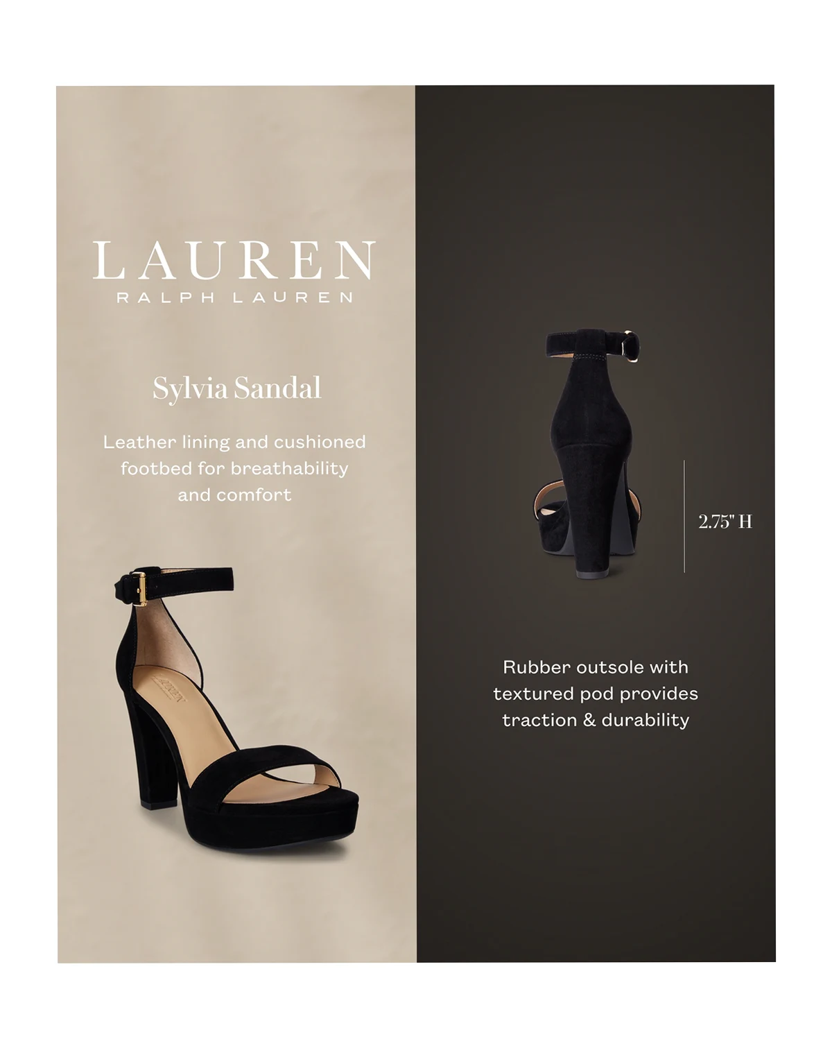 Make a bold impression with these Lauren Ralph Lauren Sylvia Platform Sandals, featuring a buckled ankle strap for a secure fit. The cushioned footbed and open toe offers comfortable elegance.