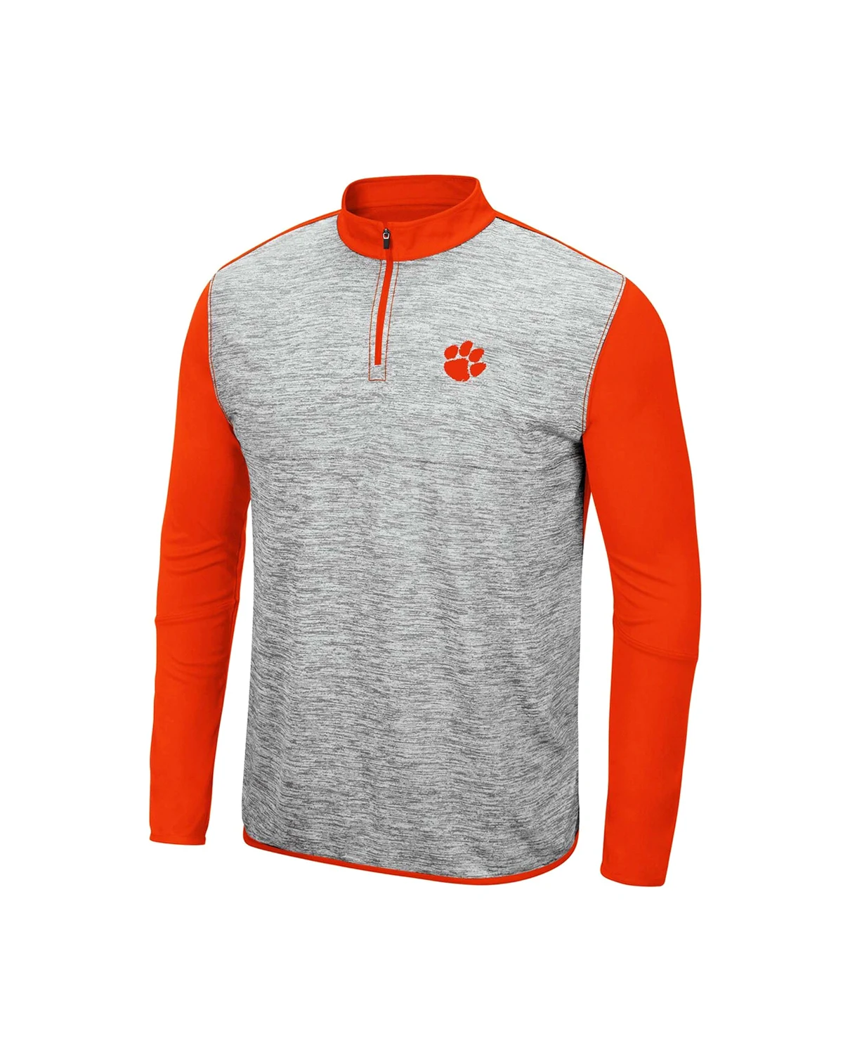 Create an ensemble well suited to your Clemson Tigers pride with this Prospect jacket. Colosseum has crafted a lightweight jacket that's great as a layering piece or for keeping warm on slightly chilly days. Its subtle Clemson Tigers graphics are enhanced by the contrasting sleeves, back and collar, allowing this quarter-zip to be paired with other team apparel easily.
