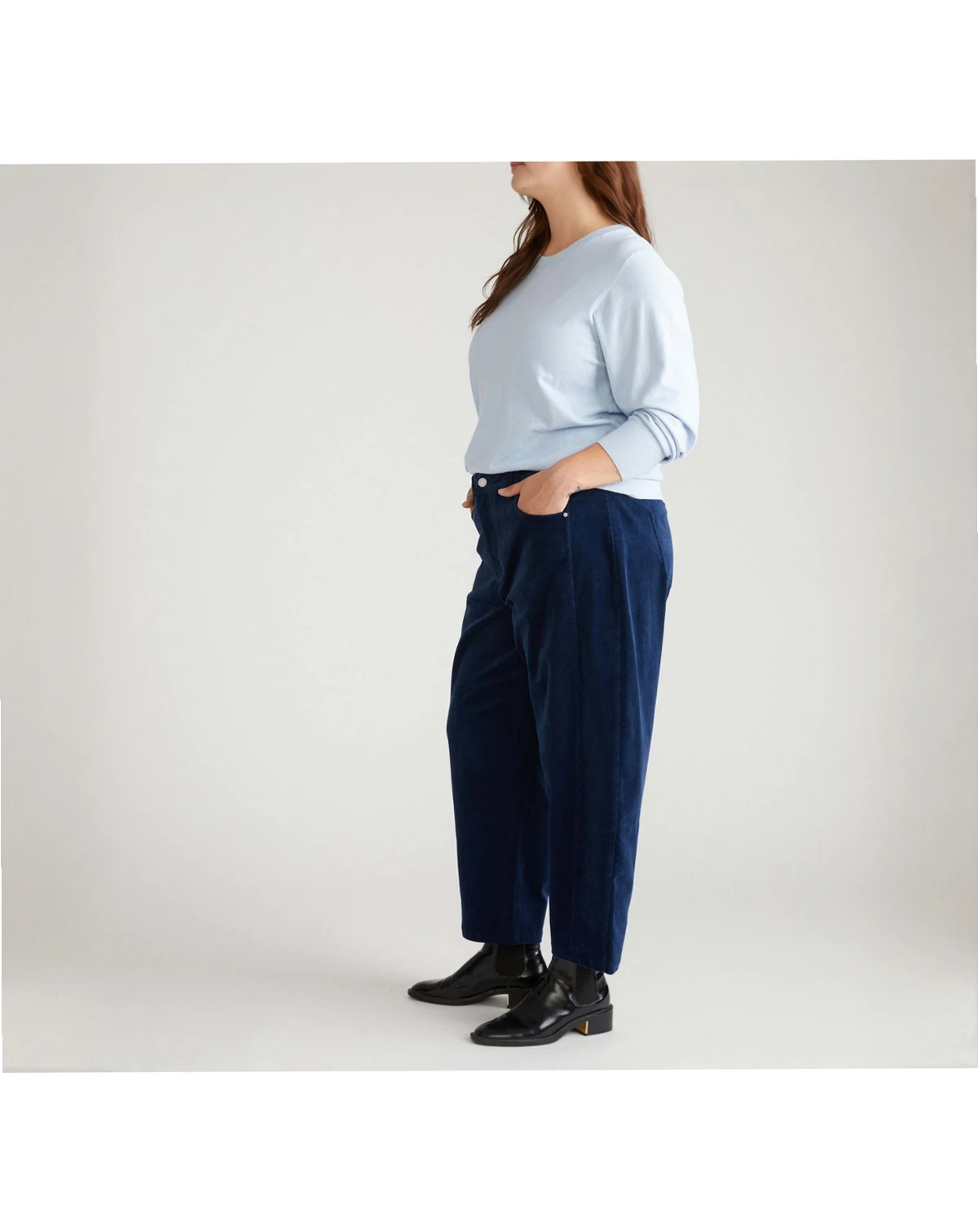 Inspired by our best-selling Dakota Twisted Leg Jeans, the Dakota Twisted Leg Corduroy Pants in Pageant Blue offer a flattering barrel-leg silhouette that is easy to wear without being oversized. Crafted from corduroy with a touch of stretch, these pants provide comfort and durability. Features include extra-deep pockets that lie flat, a side panel that follows your body s contours, and an encased elastic waistband for a secure, comfortable fit. Available in sizes 00 to 40 for a truly inclusive fit.