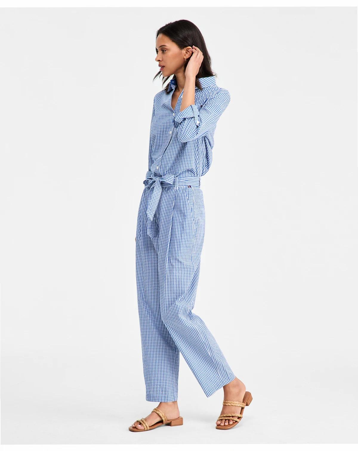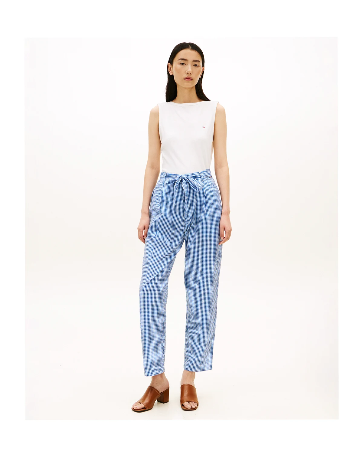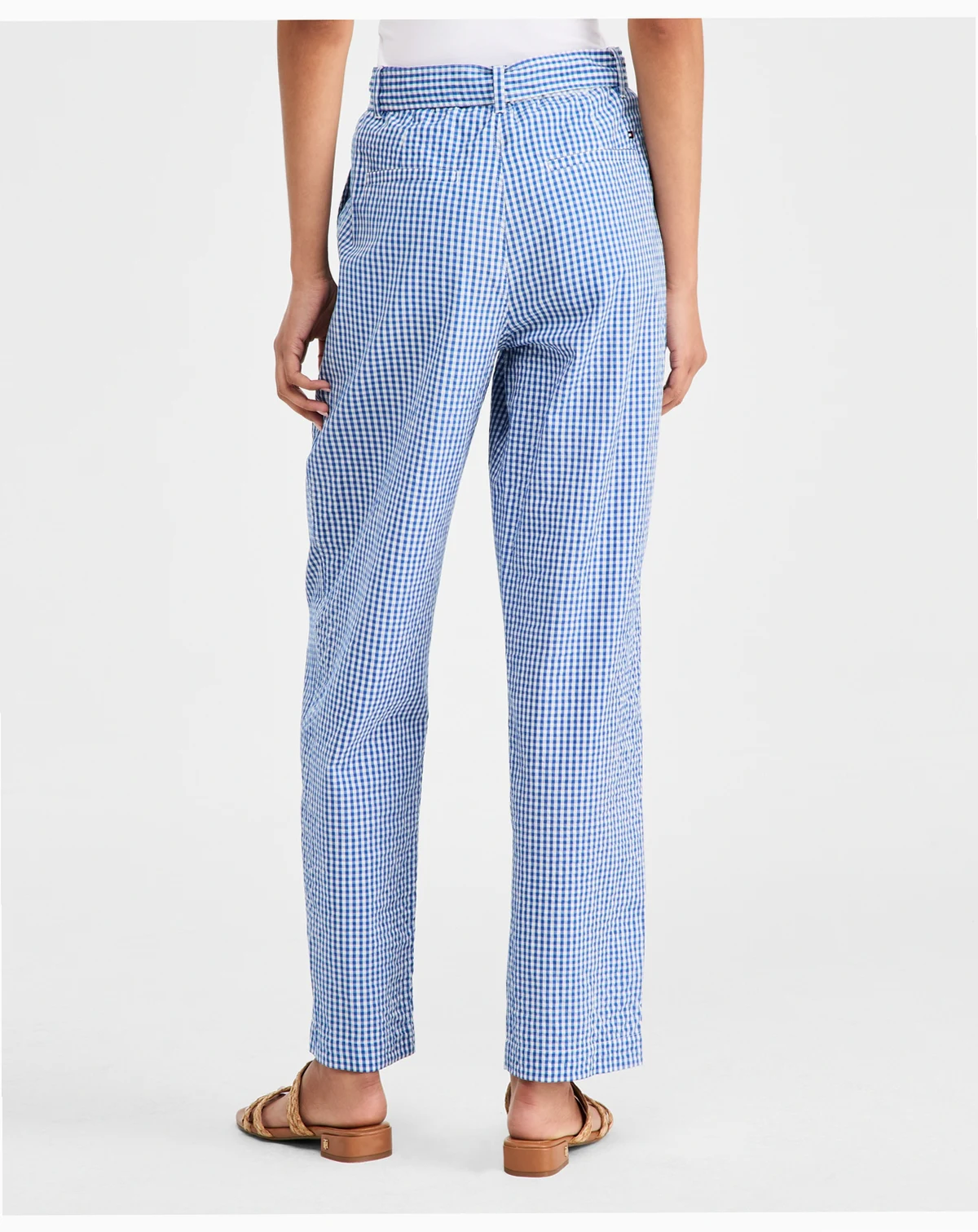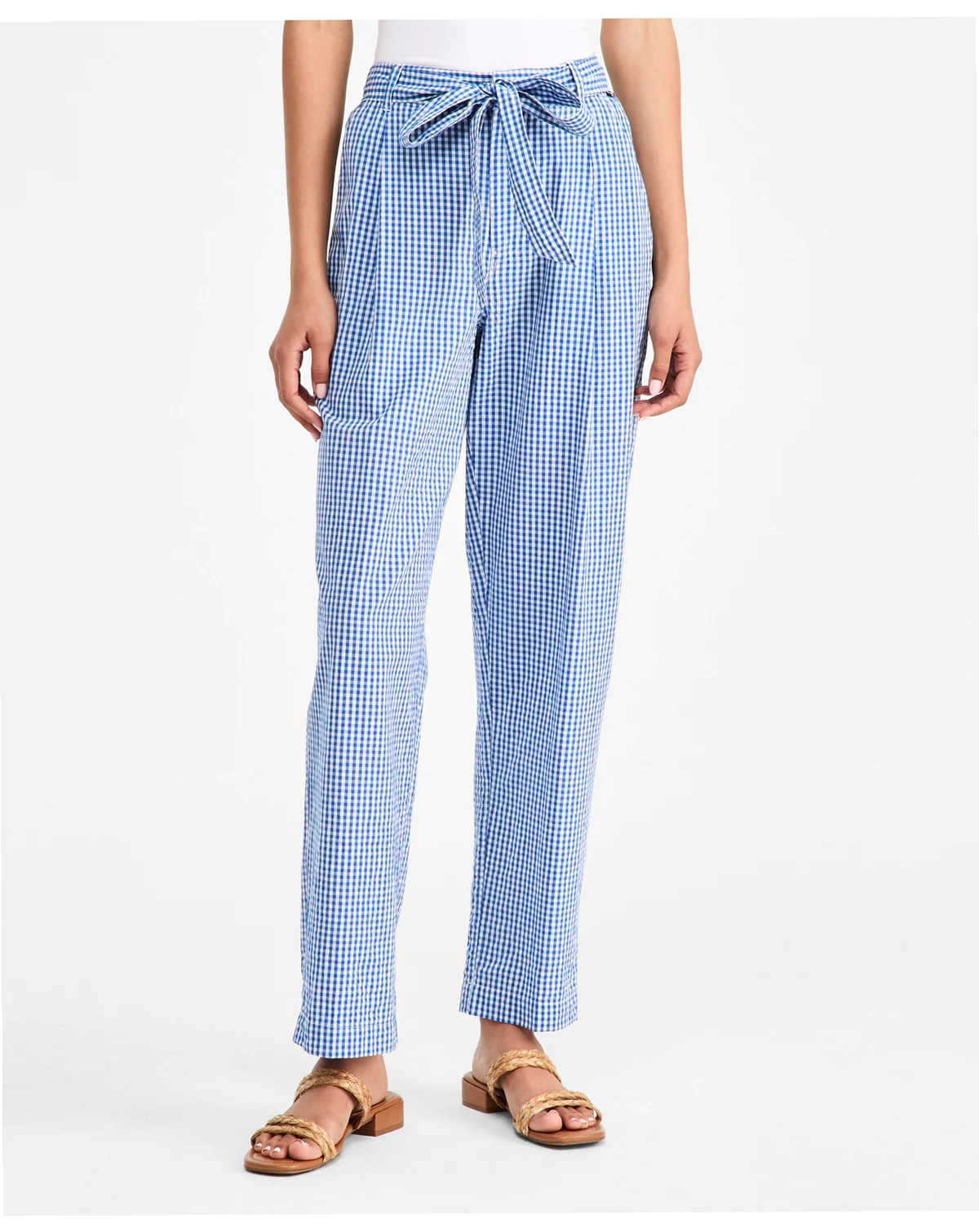 Presenting a tailored tapered silhouette with a belted waist, these Tommy Hilfiger pants offer a polished gingham pattern. The classic print and ankle length create a versatile, smart-casual look.