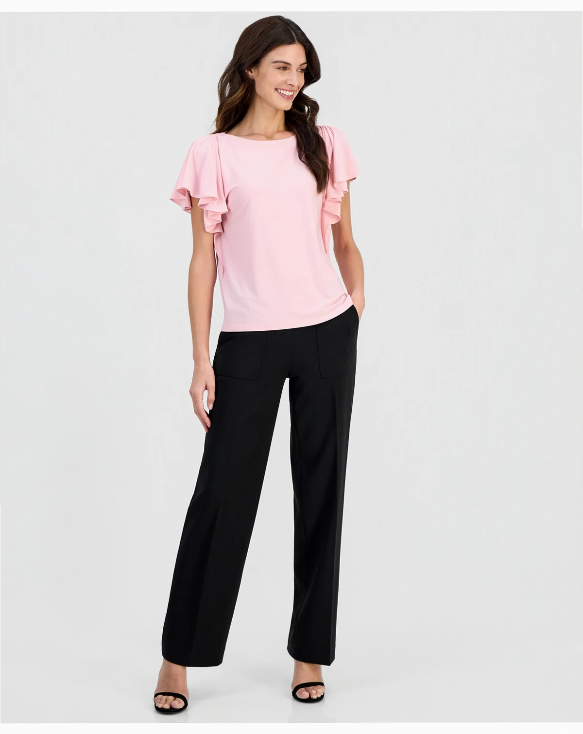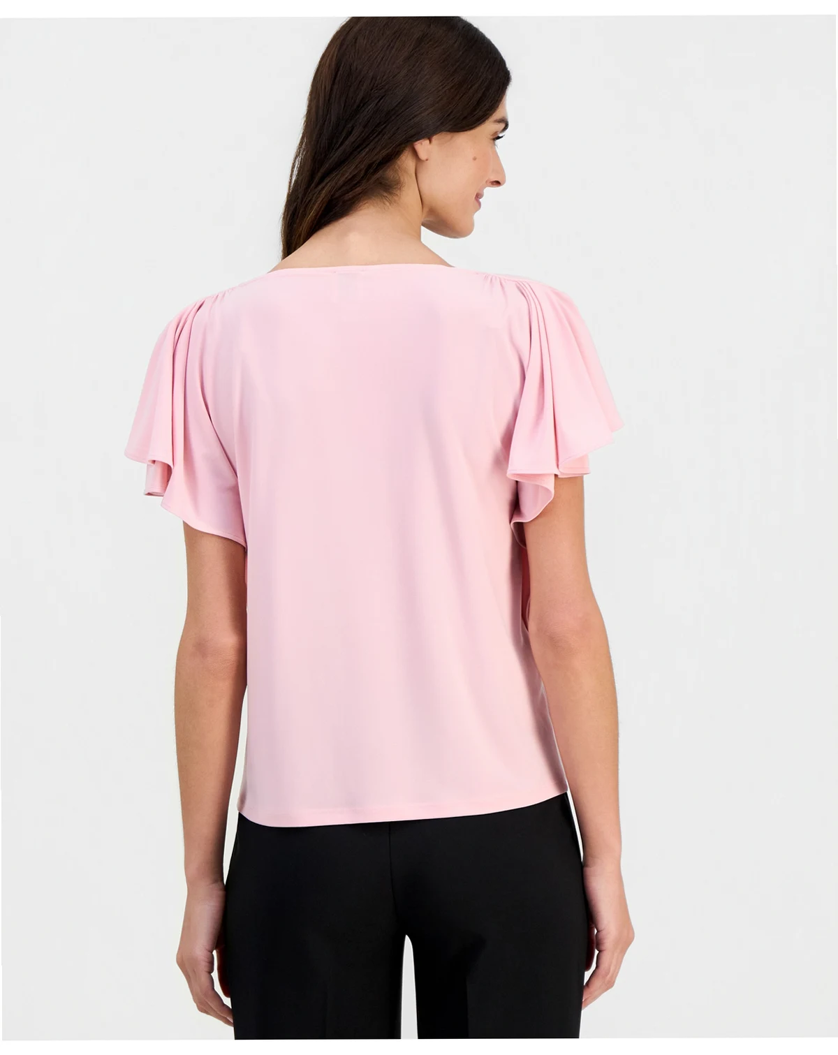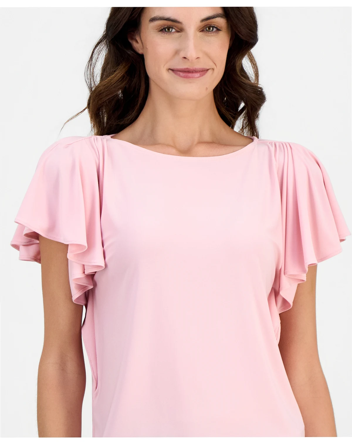 Women's Crewneck Cascade-Flutter-Sleeve Top
