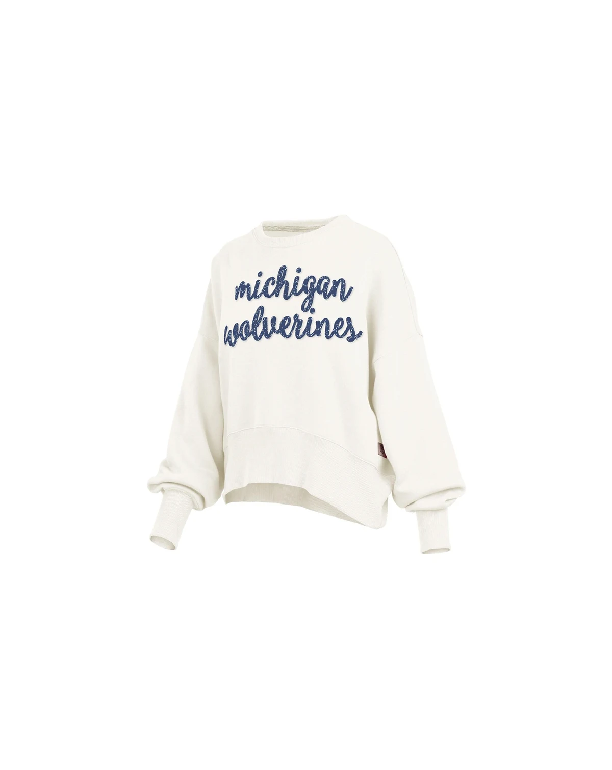 Show off your love for the Michigan Wolverines in comfort and style with this Oversized Chelsea Waist Length Pullover Sweatshirt from Pressbox. The chenille applique graphics with metallic accents add a touch of sparkle, ensuring your Michigan Wolverines spirit shines. The oversized fit and dropped shoulder seams provide a relaxed, laid-back feel, perfect for cozy game days or casual outings.