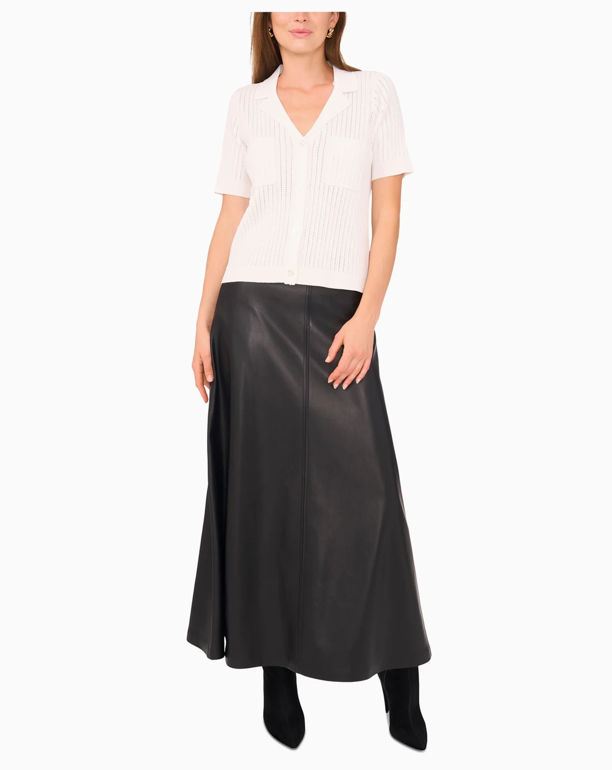 Add a touch of delicate charm to your wardrobe with this women's pointelle button front top, perfect for a subtly textured and stylish look. ABOUT THE BRAND: Vince Camuto is a globally renowned brand that embodies European styling. Detailed craftsmanship across the line embraces current trends while maintaining a classic aesthetic.