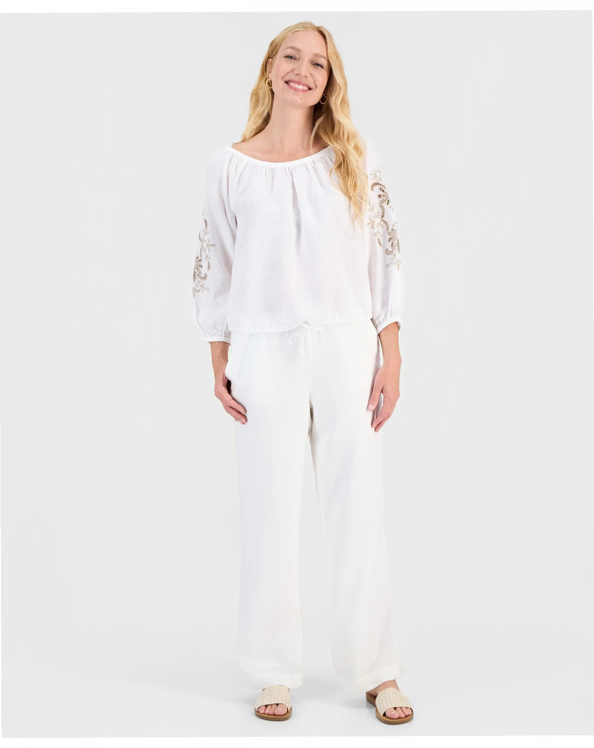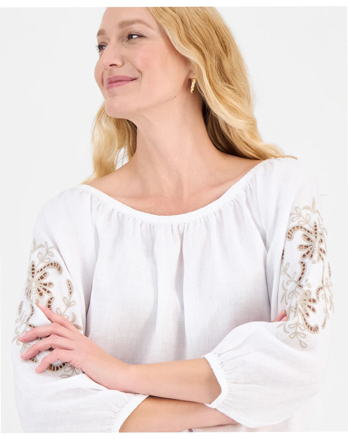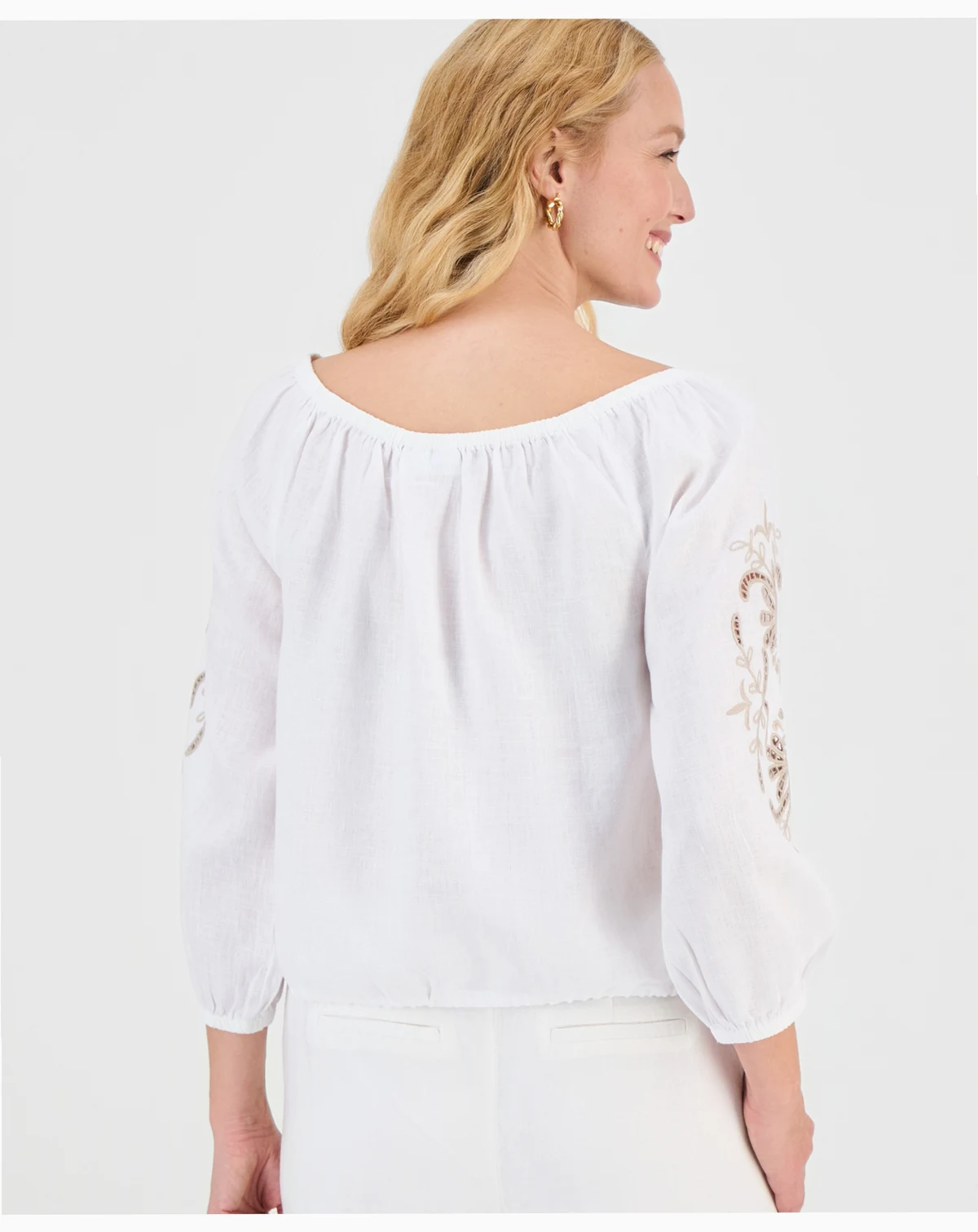 Women's 100% Linen Tile On-Off-Shoulder 3/4-Sleeve Top, Macy's Exclusive