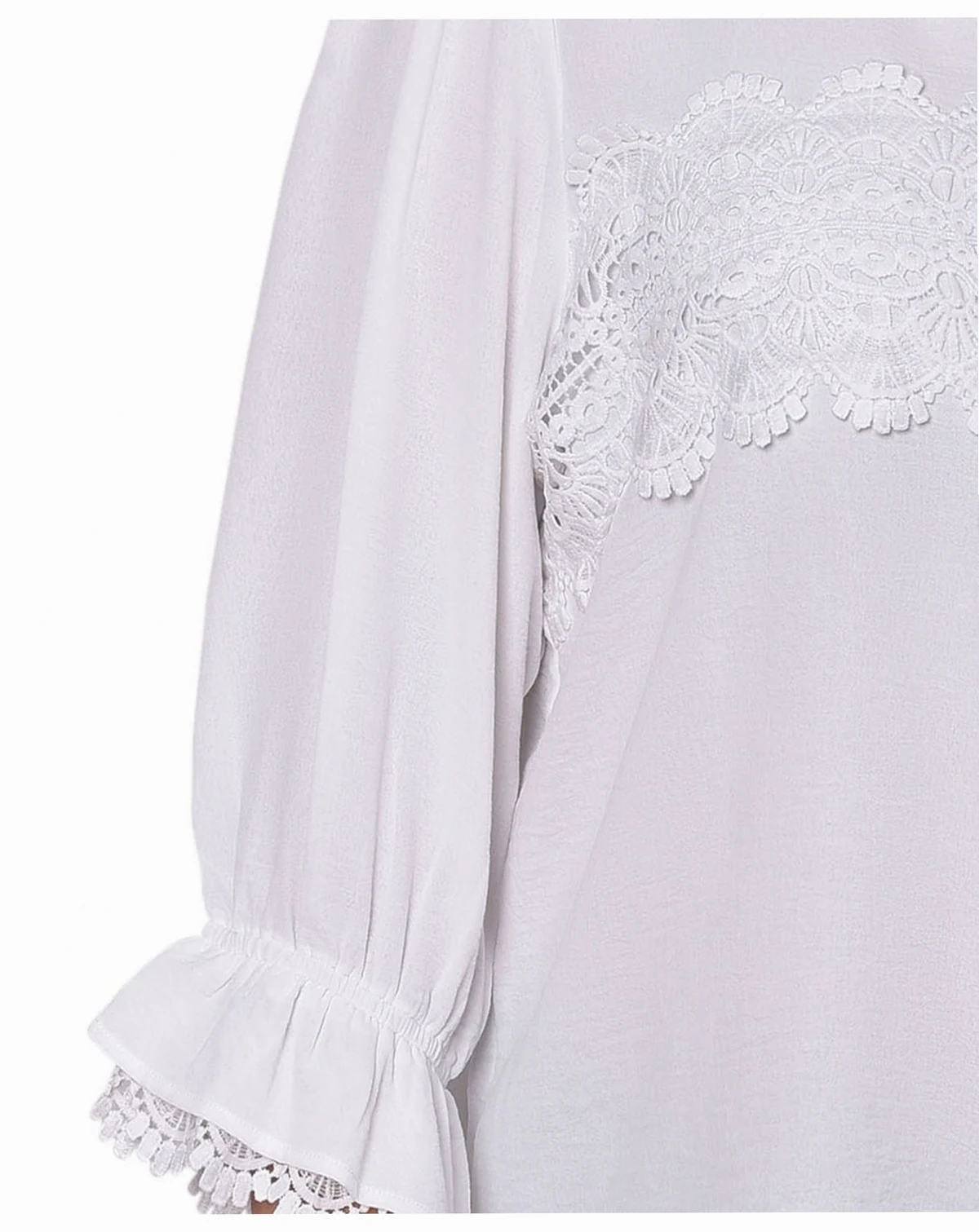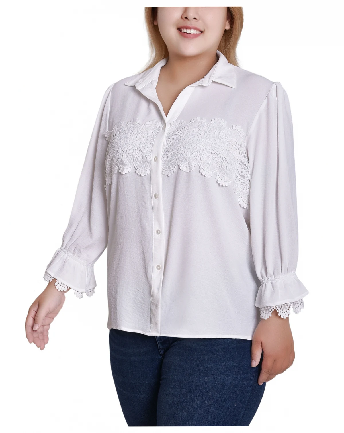 Plus Size 3/4 Sleeve Blouse With Lace Details Top