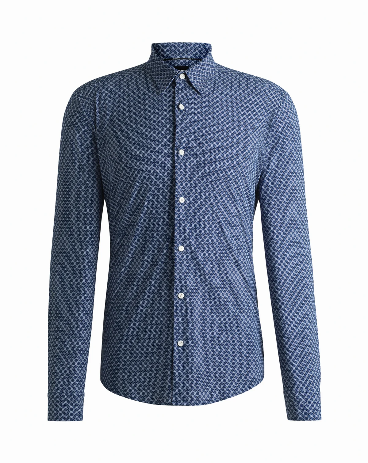 A new-season shirt with a contemporary print by Boss. This piece is tailored to a defined fit in performance-stretch jersey for comfort.