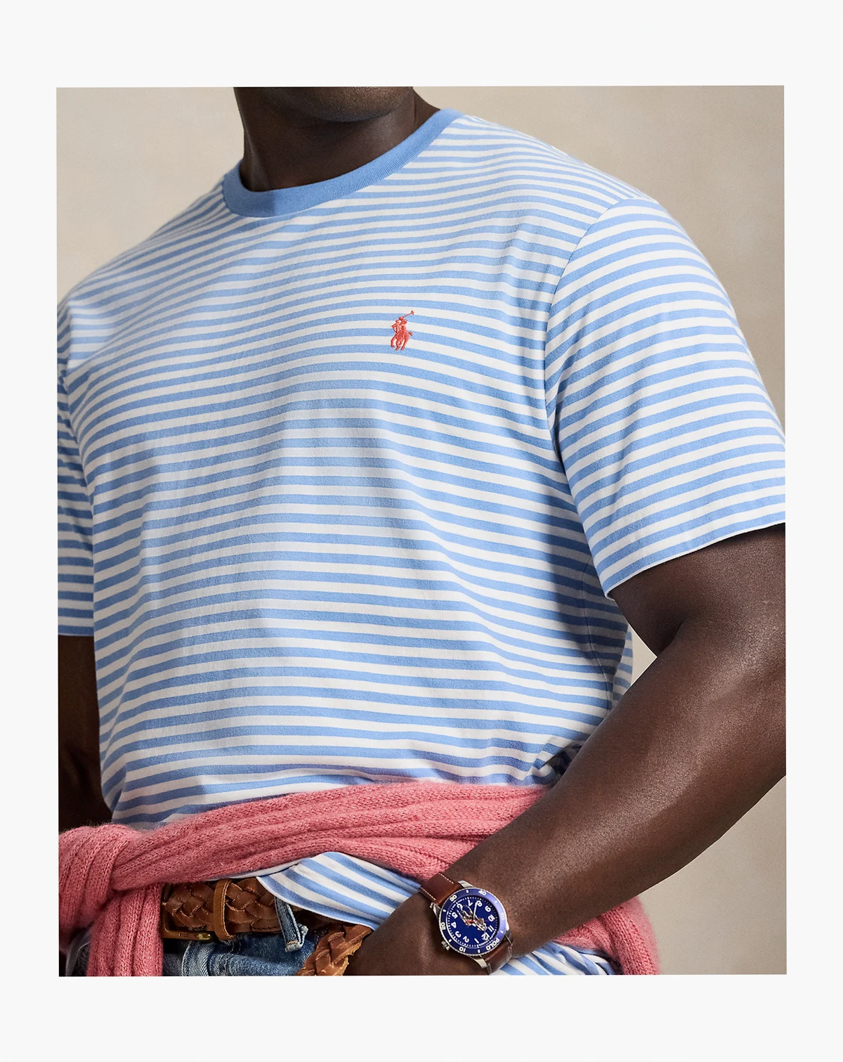 Crafted with soft cotton jersey, this Big & Tall T-shirt from Polo Ralph Lauren features a classic striped pattern as well as Polo's signature embroidered Pony for a timeless look.