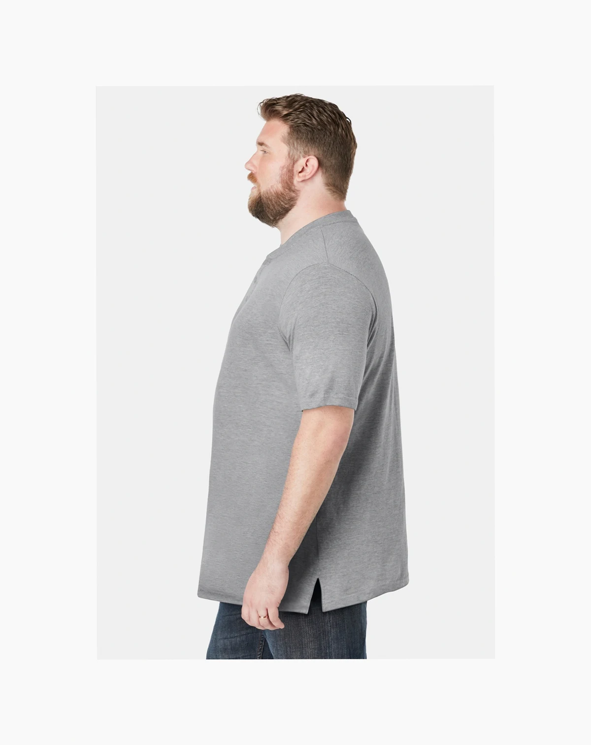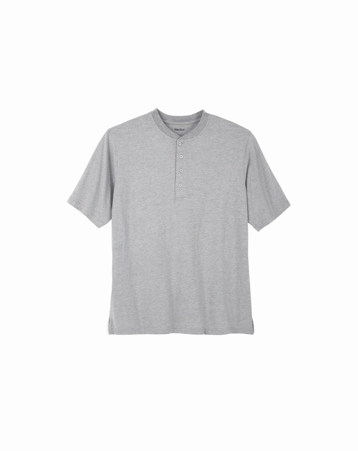 Our Shrink-Less Lightweight Henley T-Shirt has dyed-to-match buttons at the placket and plenty of room for mobility. It features Shrink-Less technology which means you can throw it in the dryer without worrying about shrinkage. Plus, it is a great shirt to wear all year - from the office to a night out and special celebrations. Relaxed fit 4-button placket. Dyed-to-match buttons on the placket. Shrink-Less fabric - won't shrink in dryer Solid colors: 100% cotton heathers: cotton/polyester. Machine wash imported Big abt. 32" Tall abt. 34"