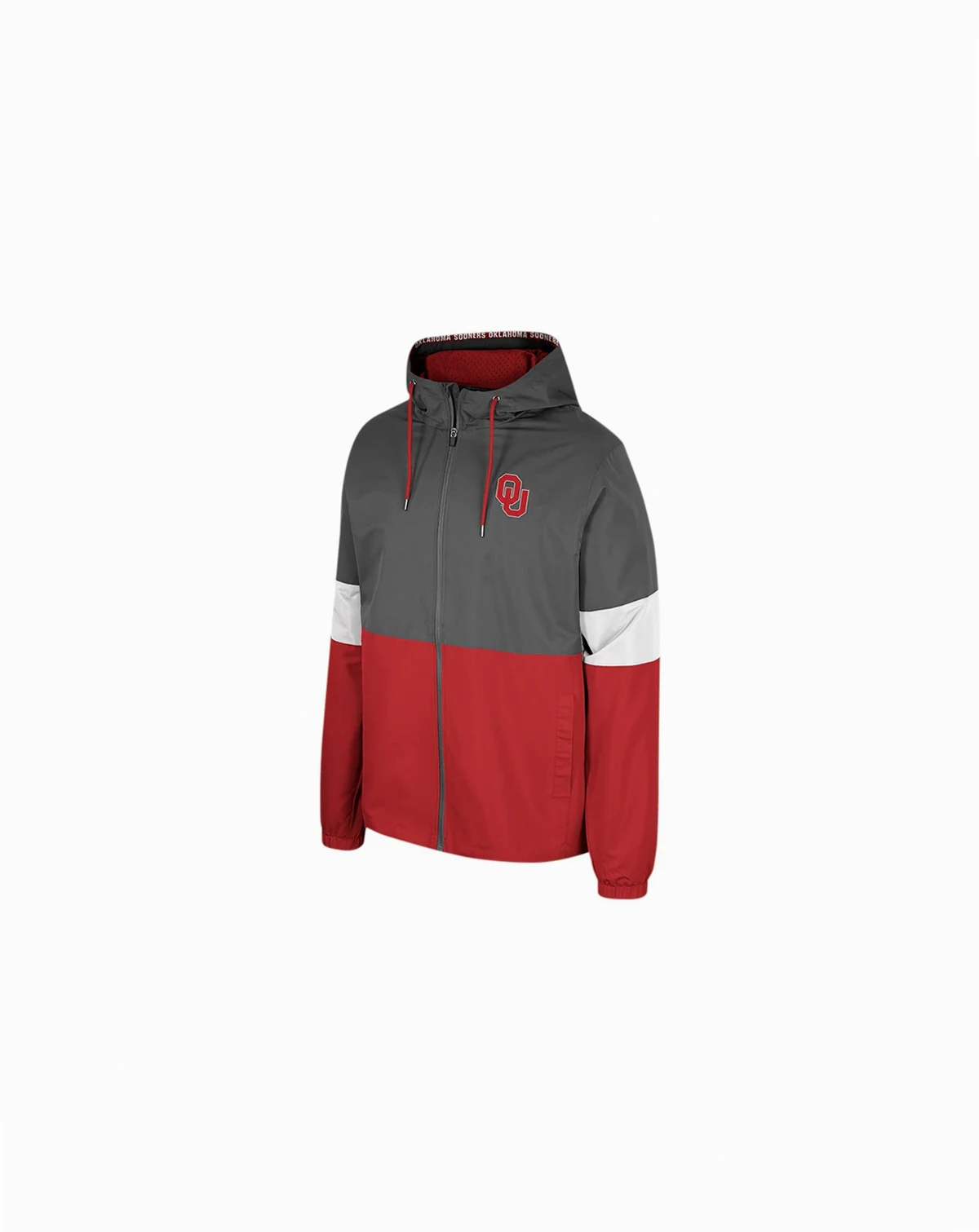 Be ready next time cooler temperatures roll through with this Oklahoma Sooners Miles hoodie jacket from Colosseum. It features a bold color-blocked pattern along with Oklahoma Sooners graphics printed on the left chest and inside the hood for an undeniable showing of spirit. The front pockets provide ample storage space, while the midweight build makes this full-zip a strong choice for layering up.