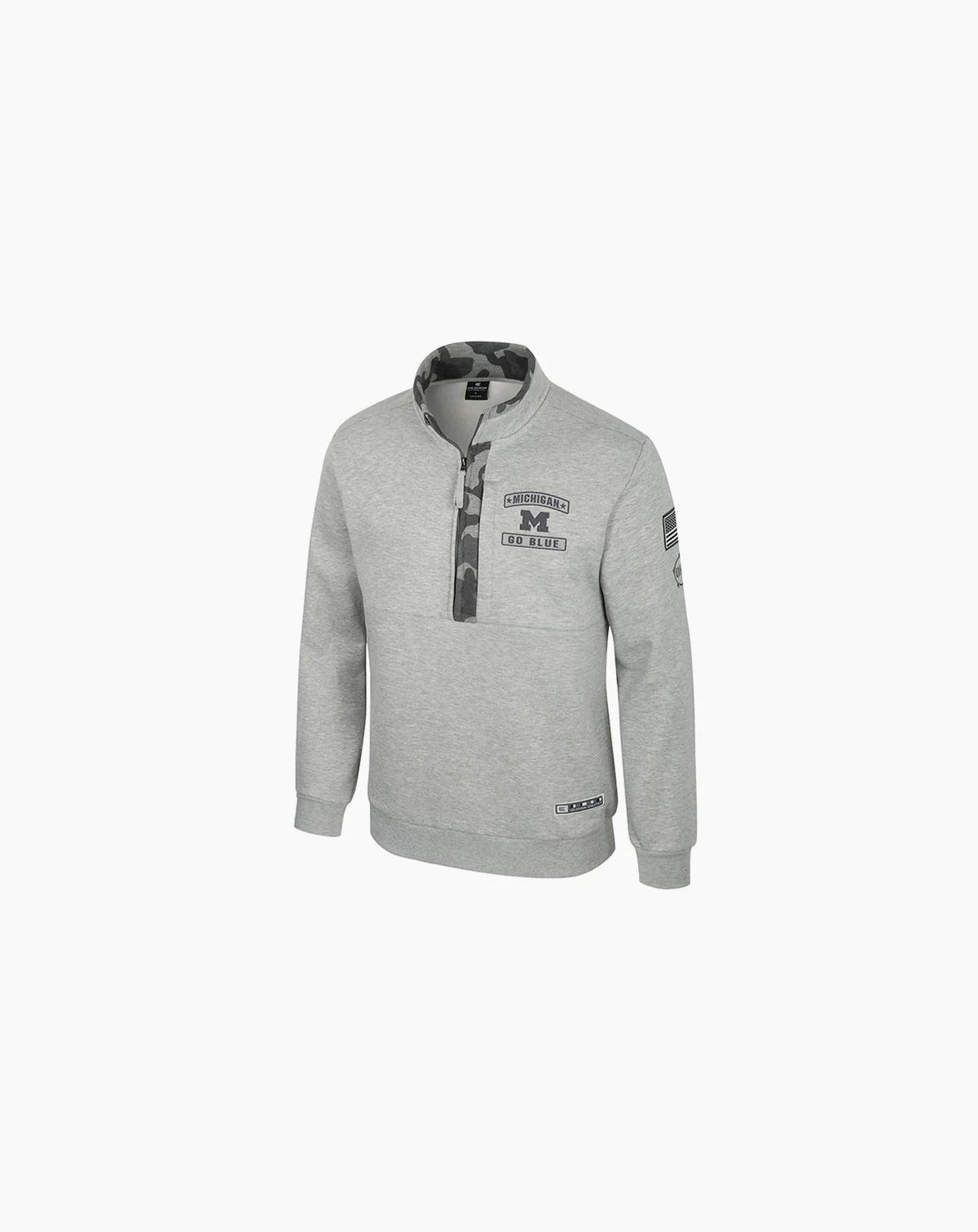 Showcase your love for the Michigan Wolverines and your appreciation for the armed forces with this OORAH OHT Military Appreciation Fleece Quarter-Zip Jacket from Colosseum. It features a bold Michigan Wolverines graphic on the left chest along with a sewn-on American flag applique and OHT logo to send your love for the proud members of the U.S. military home.