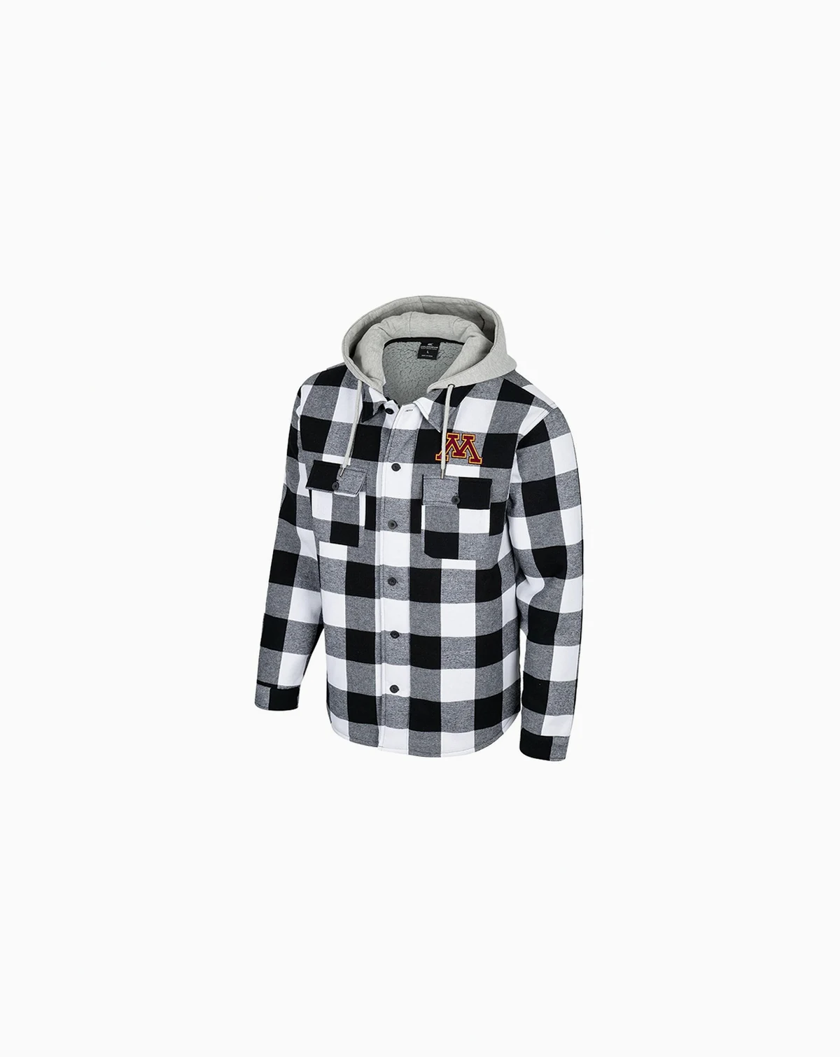 Stay warm and show your Minnesota Golden Gophers spirit with this Colosseum Buffalo Plaid Full-Zip Jacket. The soft Sherpa lining provides an extra layer of warmth, making it perfect for those chilly game days at the stadium or cozy nights in. The full-button overlay and woven plaid design add a touch of classic collegiate style, while the embroidered Minnesota Golden Gophers logo proudly displays your school spirit.