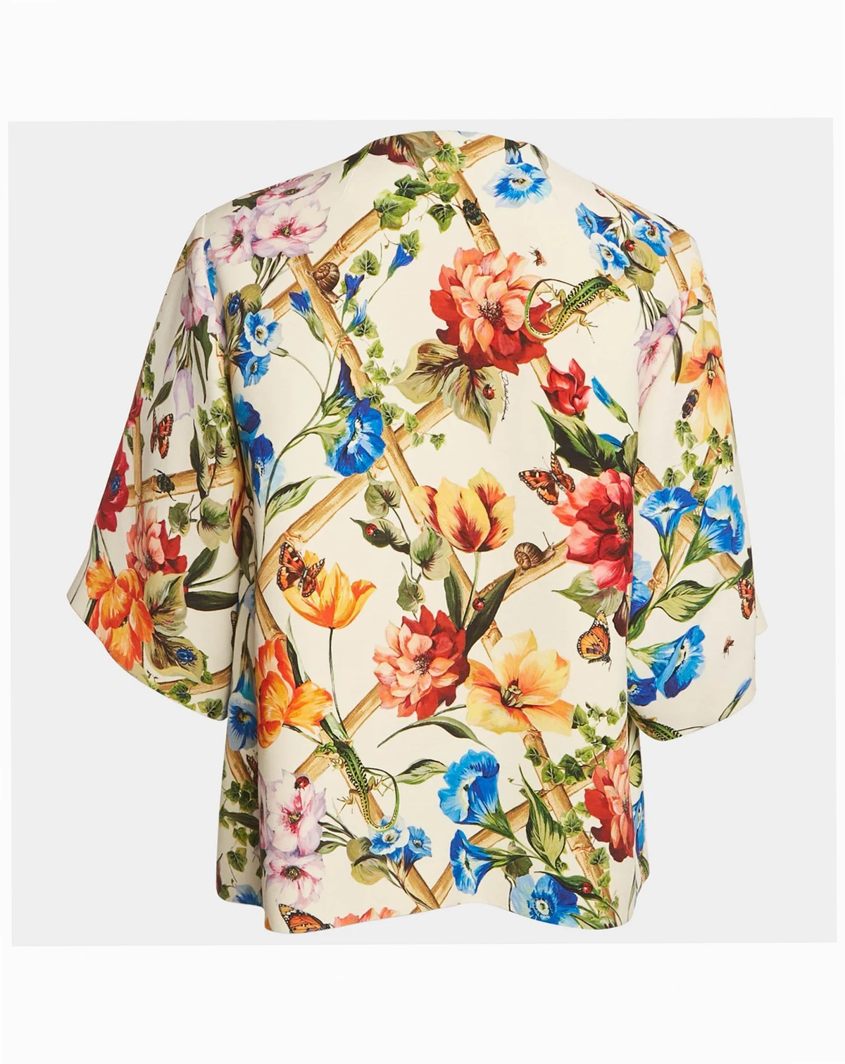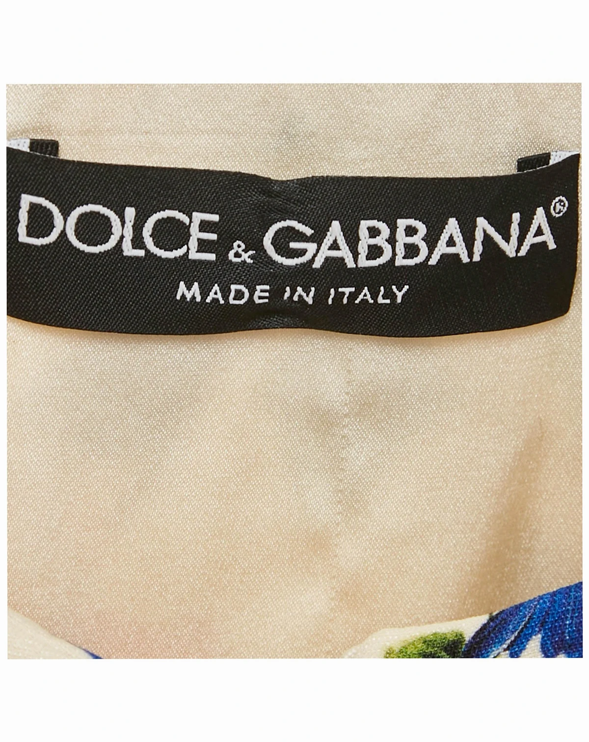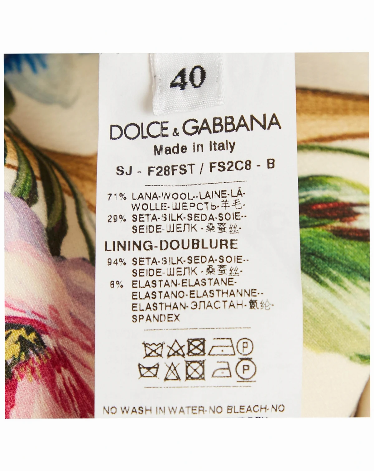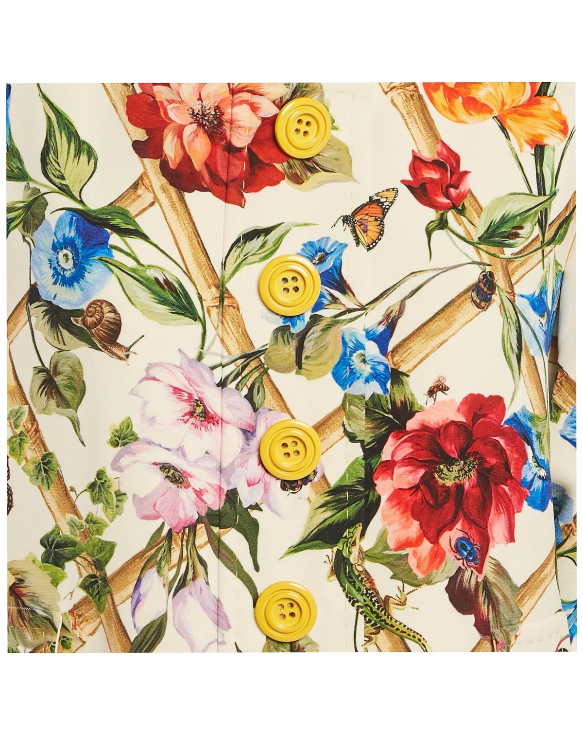 Dolce and Gabbana brings elegance to outerwear with this cream crepe jacket adorned with floral prints. The button front design adds polish while the print embodies the house s romantic aesthetic. A standout layer for sophisticated ensembles.