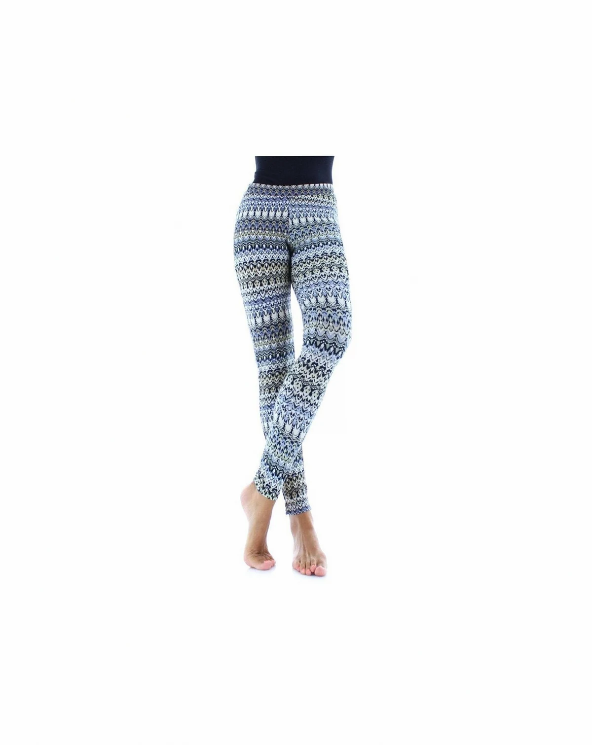 Inseam: 29"; Flat w aist measurement : S/M 14" - M/L 16"; Flat leg opening measurement : S/M 4" - M/L 4" Funky, abstract pattern with a blue color scheme; S/M=4-6, M/L=8-10, L/XL=12-14, Q1/Q2=16-18, Curvy 1X/2X=16-18, Curvy 3X/4X=20-22