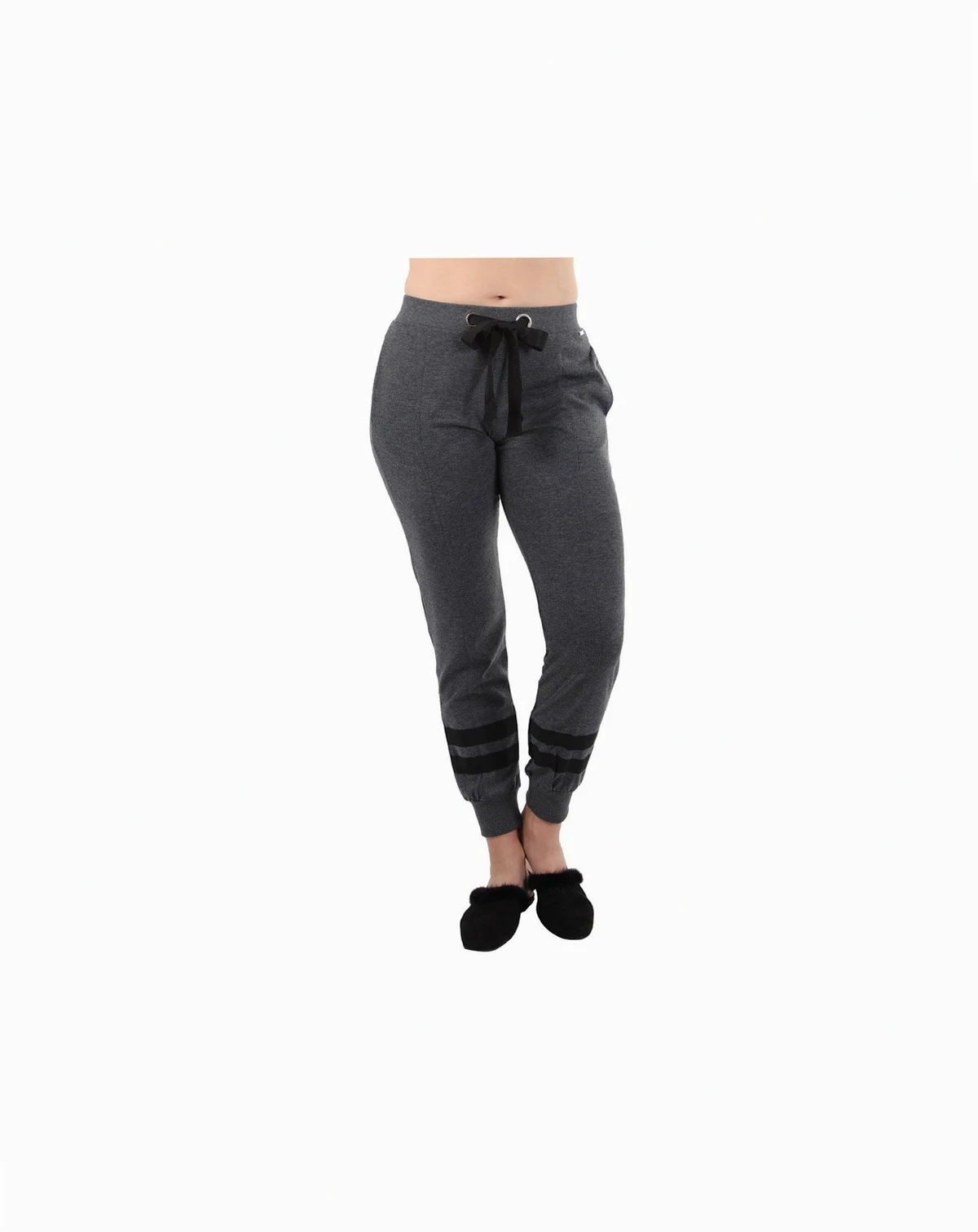 MeMoi's Activewear Charcoal Jogger Pants merge street chic with everyday comfort. Wide ribbon tie and stripe detailing add a touch of femininity to these casual lounge pants that look anything but.
