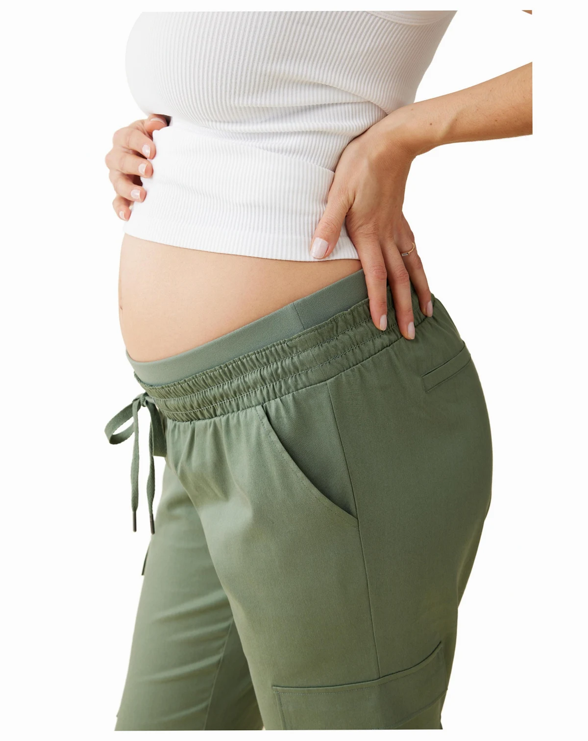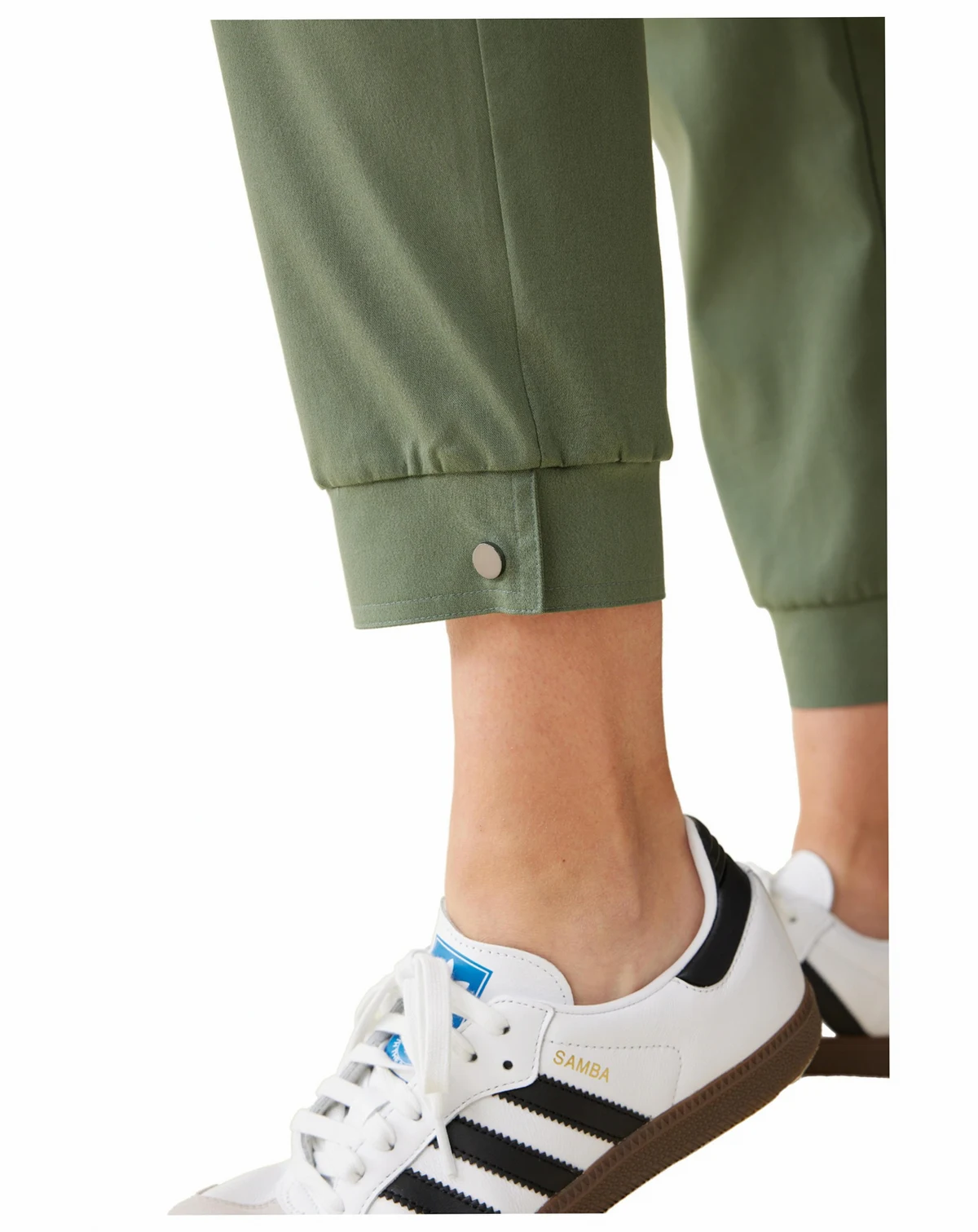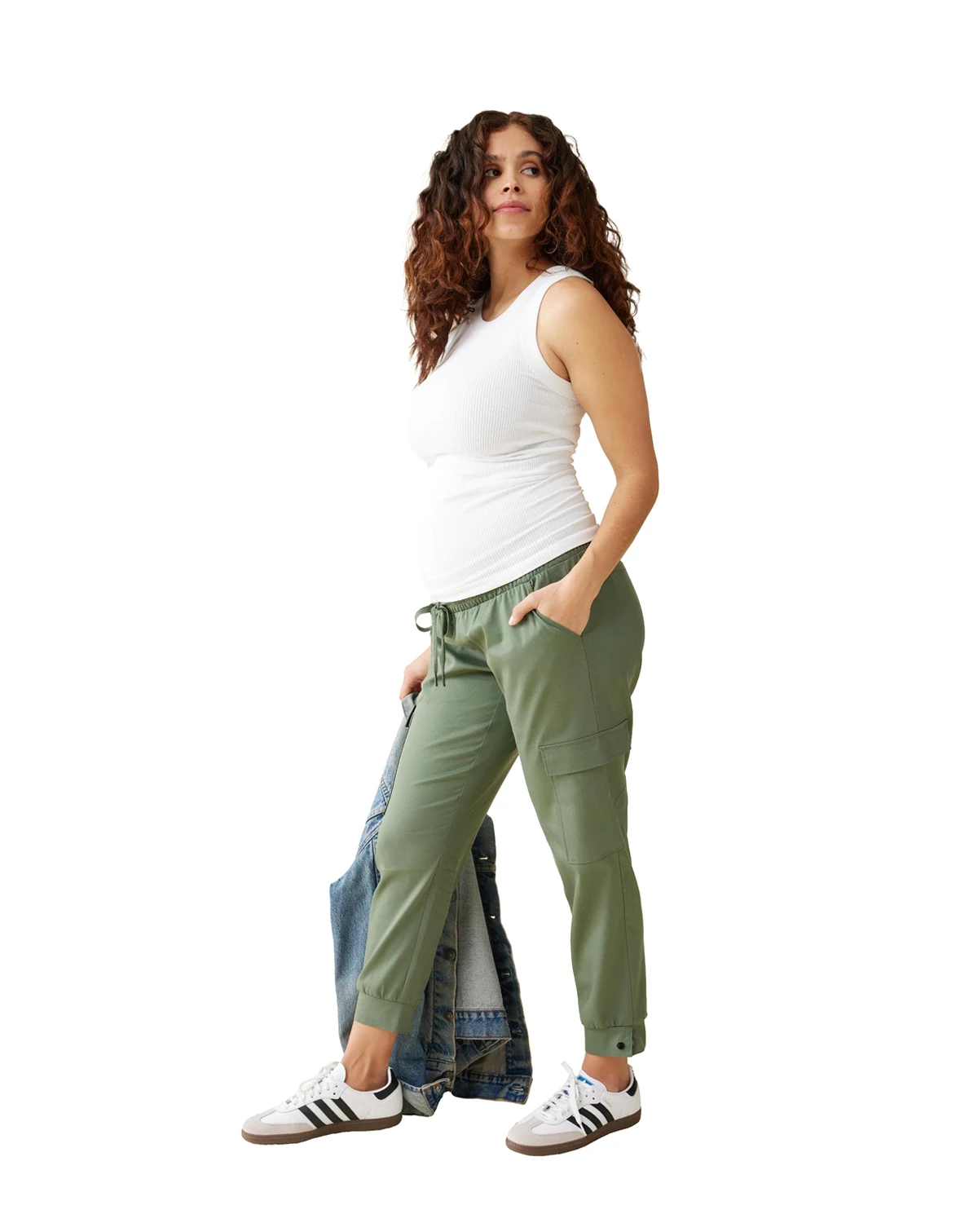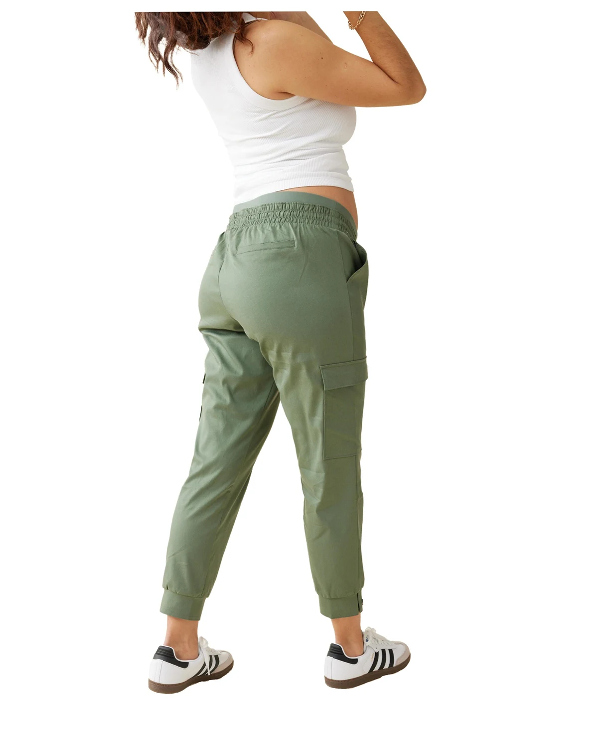 Perfectly blending comfort with function, this modern cargo pant features a ridiculously soft and supportive inner elastic waistband, an adjustable outer waistband, functional front and back pockets, side cargo pockets, and bottom cuffs with a snap closure.