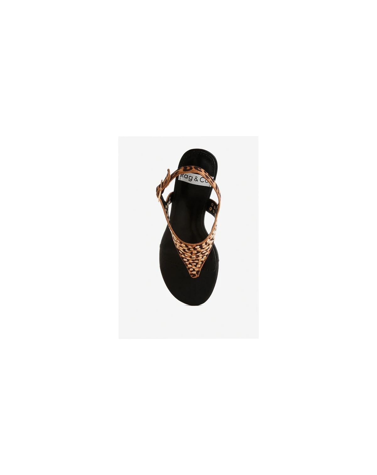 Switch up your everyday looks with these exceptional standout wedges. They come with a bold leopard print, metallic stud accents, and a roomy round toe with a thong detail. Exclusive yet comfortable, they're the perfect pair to wear all day, all season! Type: Wedges Upper Material: Microfiber Outer Sole: Rubber Open Round Toe Thong Toe Detail Metallic Stud Accents Wedge Heel Pin Buckle Fastening Soft Cushioned Footbed Heel Height: 3 inches RCSH5630