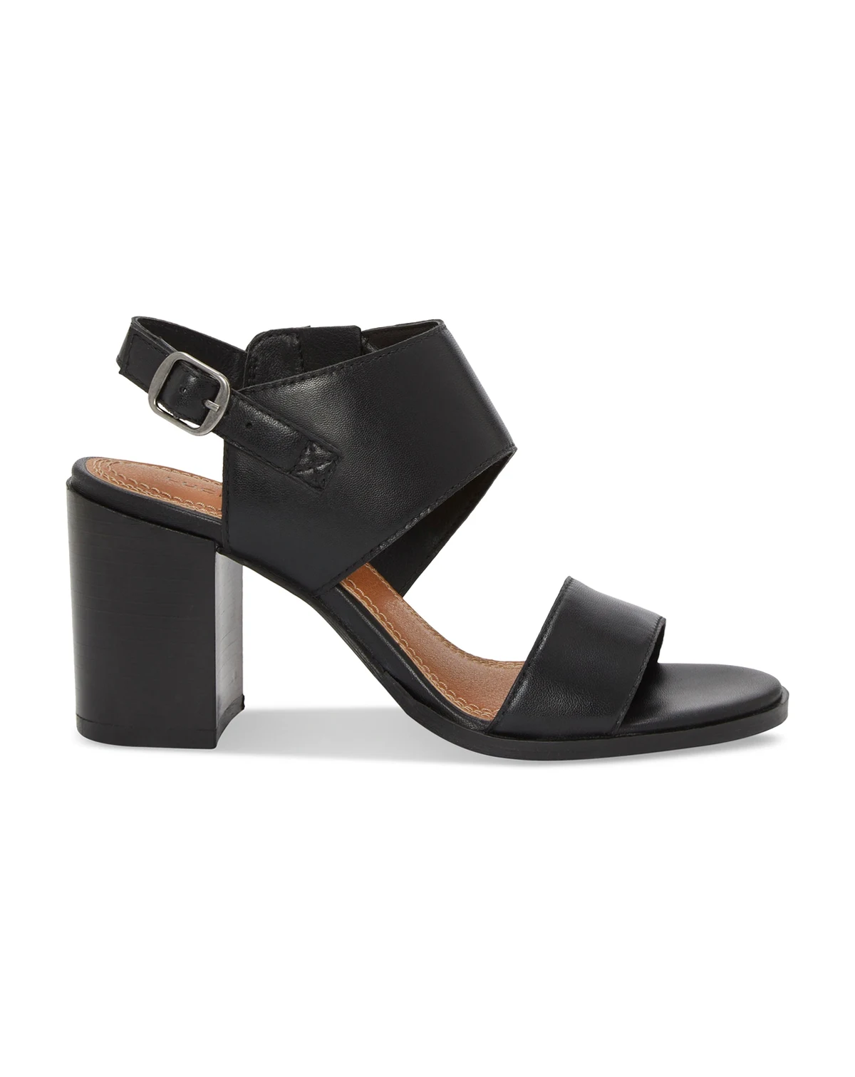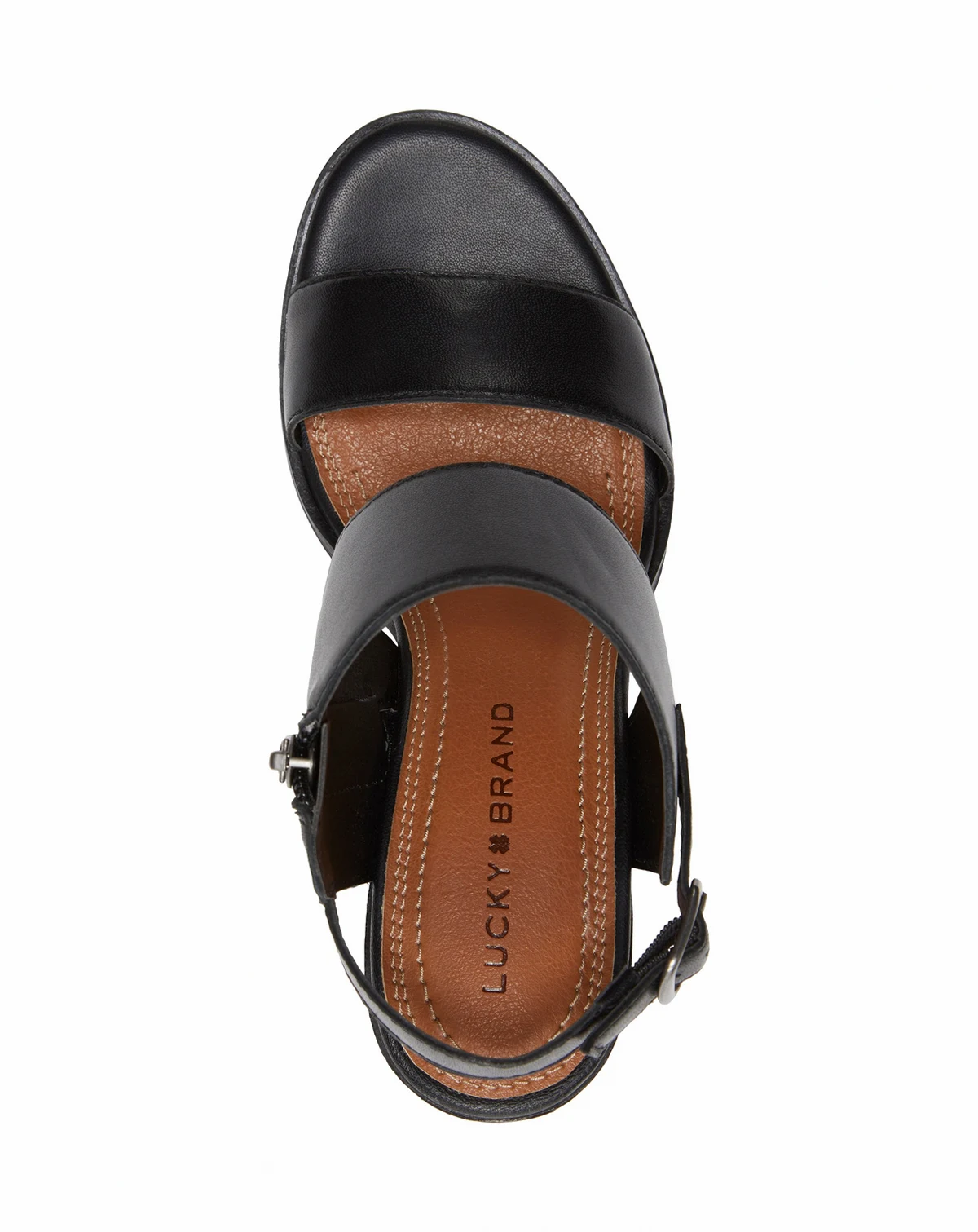 Propped on chunky block heels, the Lucky Brand Dinzin sandals pair wide and slender straps for a go-to dressy boost.