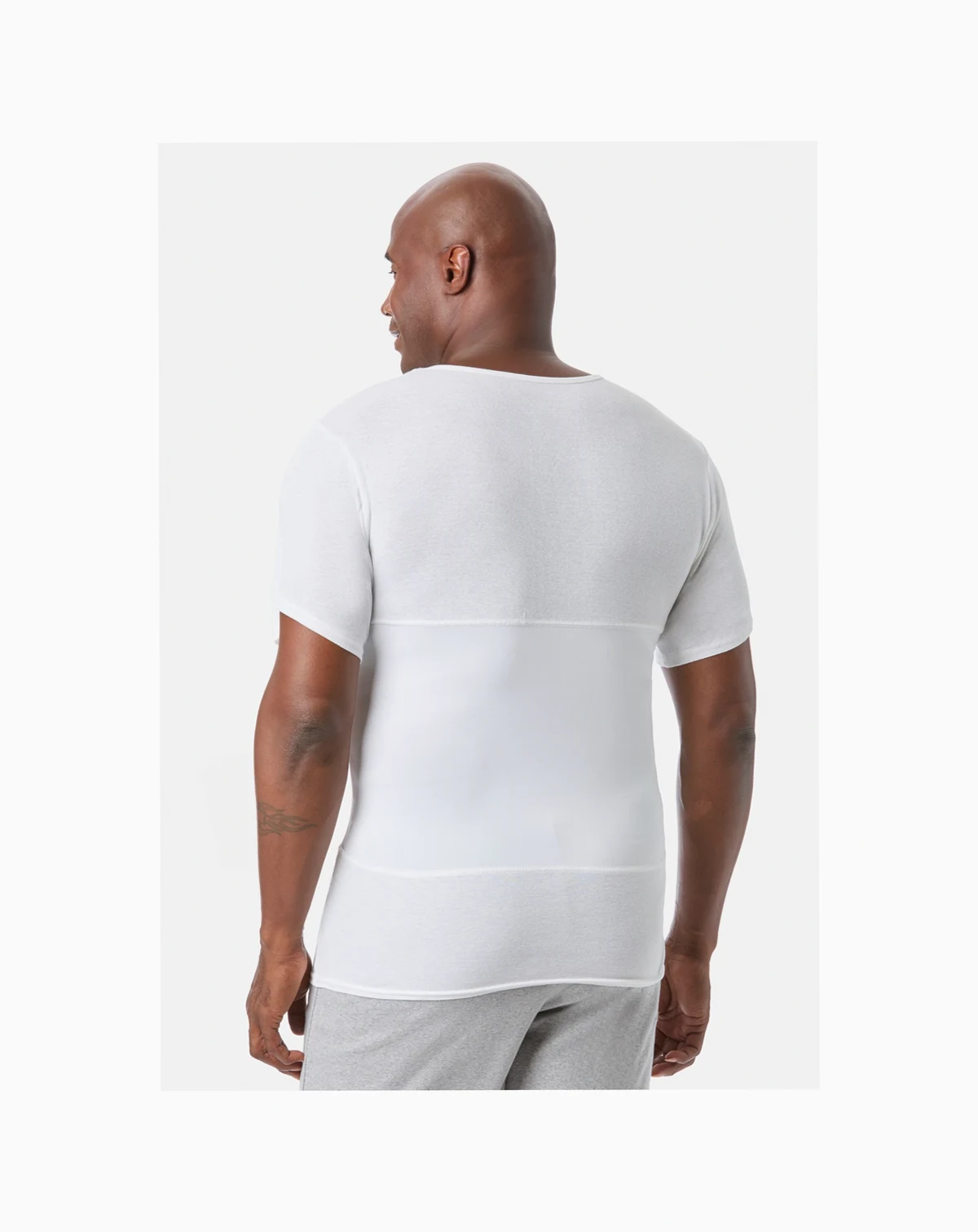 Look your best every day. The sculpting undershirt is made with a midsection compression panel to smooth and slim your midsection. Wear discreetly underneath shirts and sweaters to work and social events. Short sleeve. Midsection compression panel. Tagless. Shirt: 100% cotton panel: polyester/spandex. Machine washable. Imported