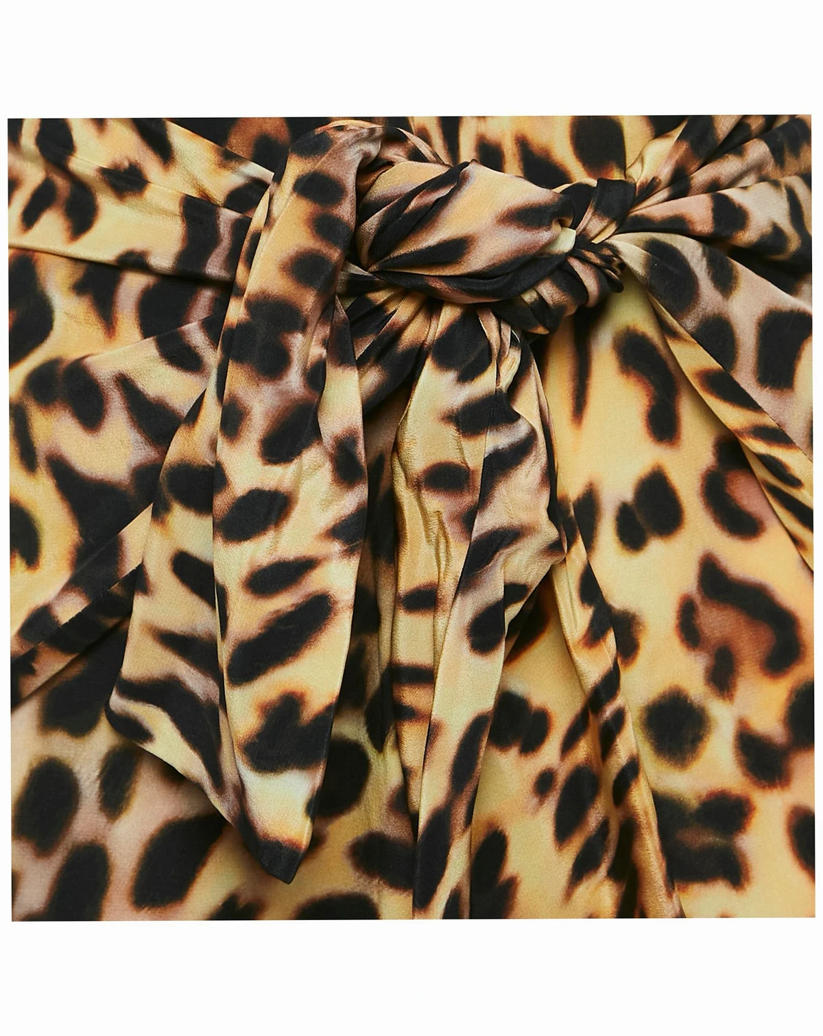 Women's Brown Leopard Print Silk Tie-Up Trousers