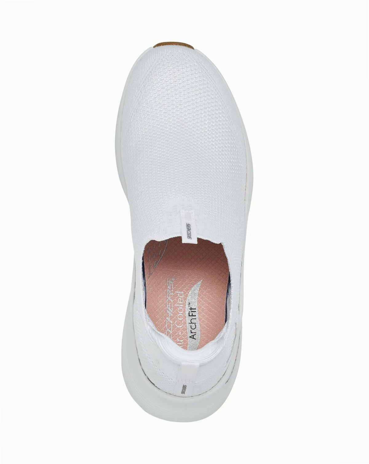 Patented Skechers Arch Fit insole system with podiatrist-certified arch support; Removable Arch Fit insole helps mold to your foot to reduce shock and increase weight dispersion; Stretch Fit design for sock-like comfort; 1 3/4-inch heel height