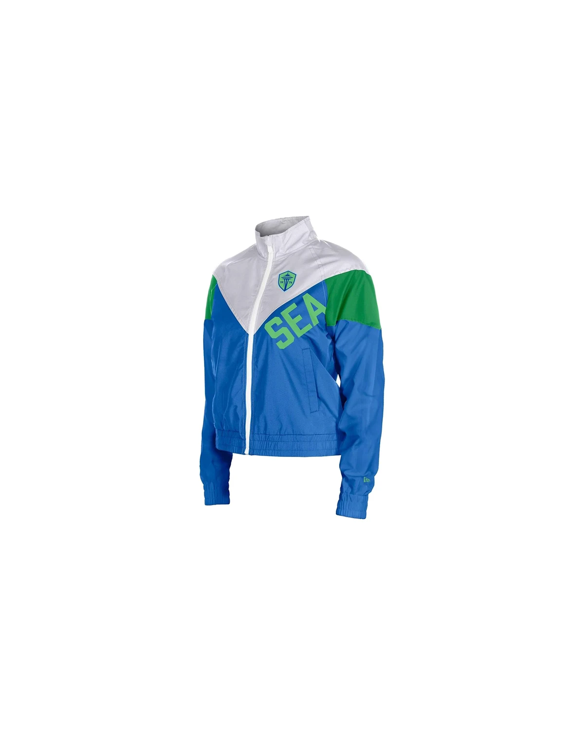 Support Seattle Sounders FC in style with this 5th Ocean by New Era Leisure Cropped Full-Zip Windbreaker Jacket. This stylish windbreaker features a mock neck and contrast-color front and back yoke, creating a fashionable and functional piece. With screen-printed and embroidered Seattle Sounders FC graphics, you can show off your team pride in style while the lightweight fabric keeps you comfortable.