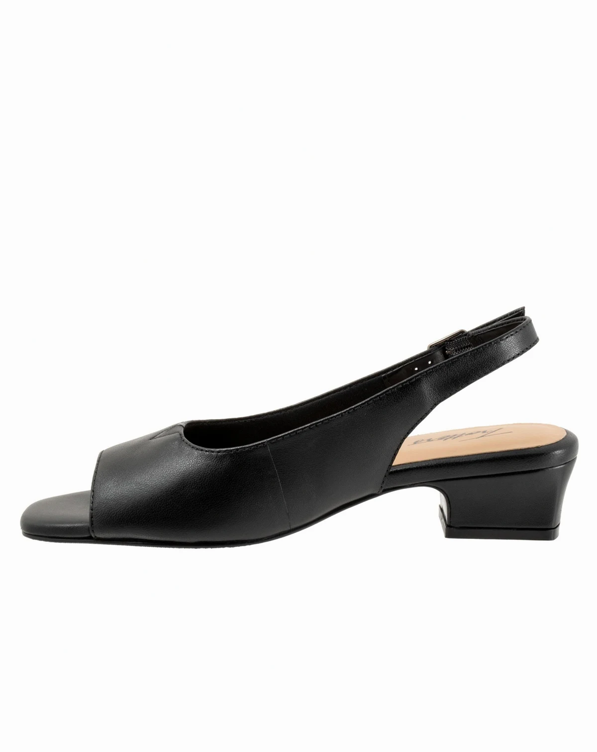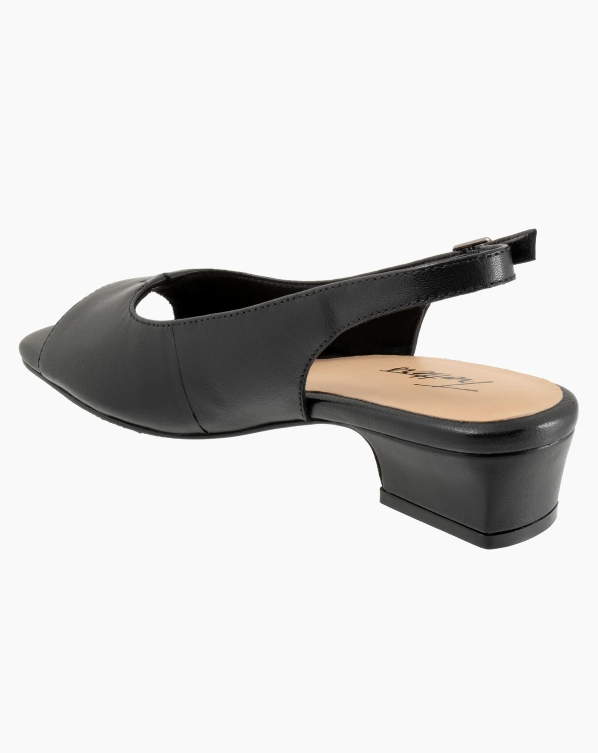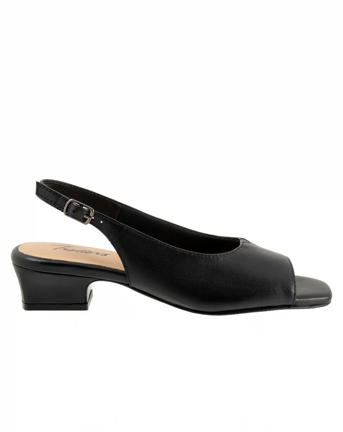 Step into timeless elegance with the Trotters Dawn Sandal. Crafted from soft leather, this refined peep-toe slingback is the perfect pairing of everyday comfort and understated style. The adjustable outside buckle with hidden elastic goring ensures a secure fit with just the right amount of stretch, while the low 1 1/4" heel offers subtle lift for all-day wearability. Whether you're dressing up or down, the Dawn brings polished simplicity to any outfit.