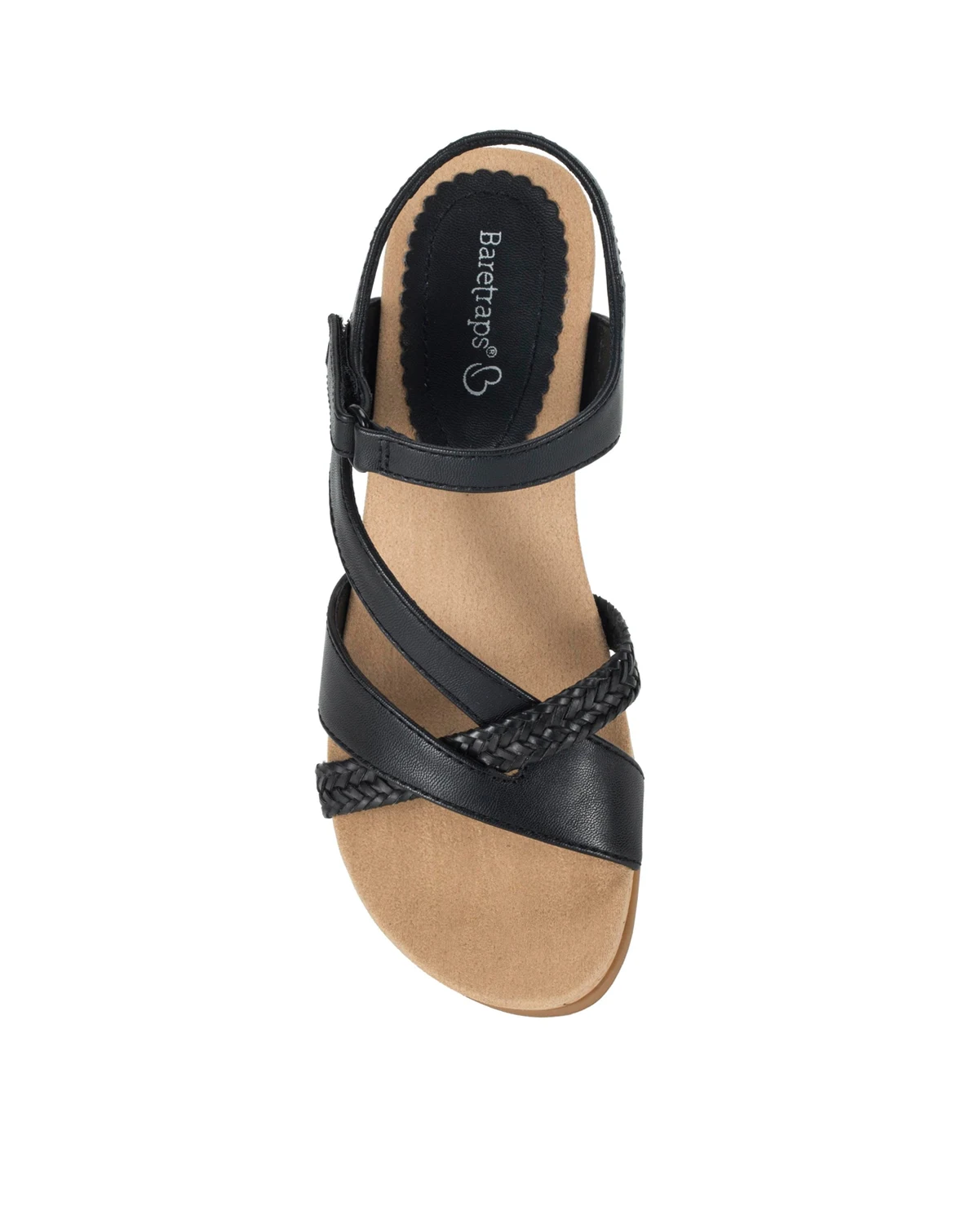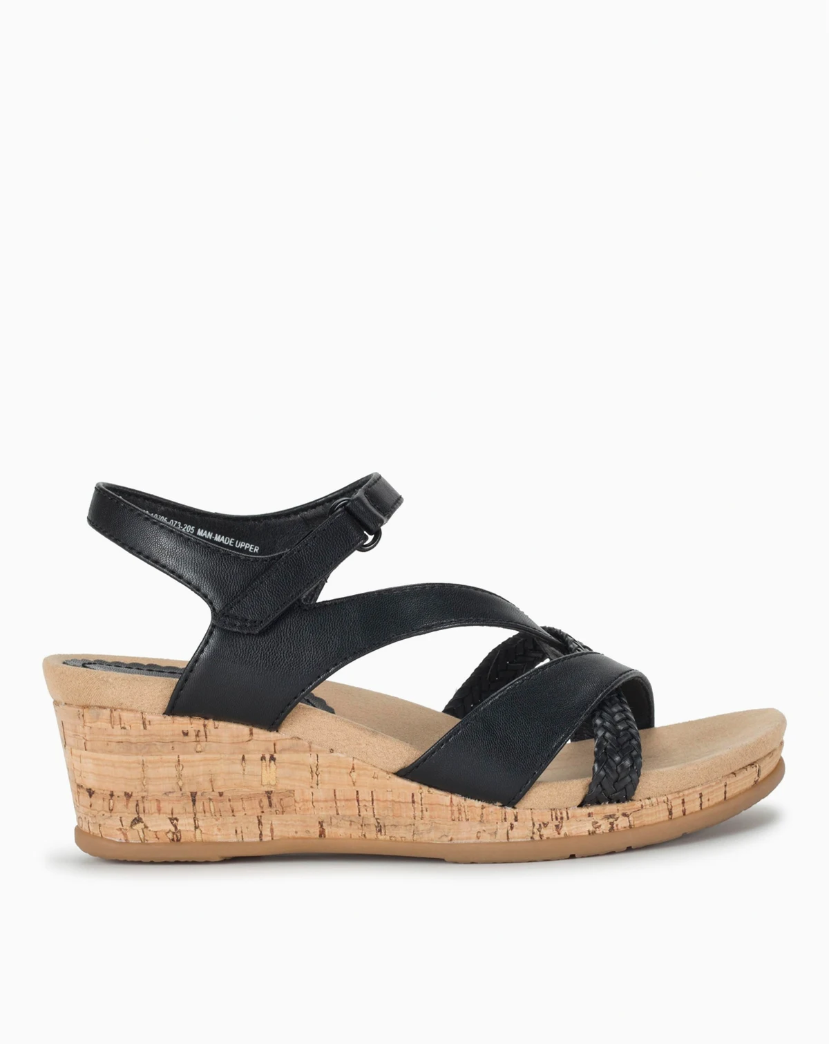 The versatile Baretraps Farah wedge heel is perfect for the office, out of the town and beyond. The design features crossed straps, including a woven one near the toe. An adjustable ankle closure and cushioned insole ensures a comfortable fit no matter where you wear them.