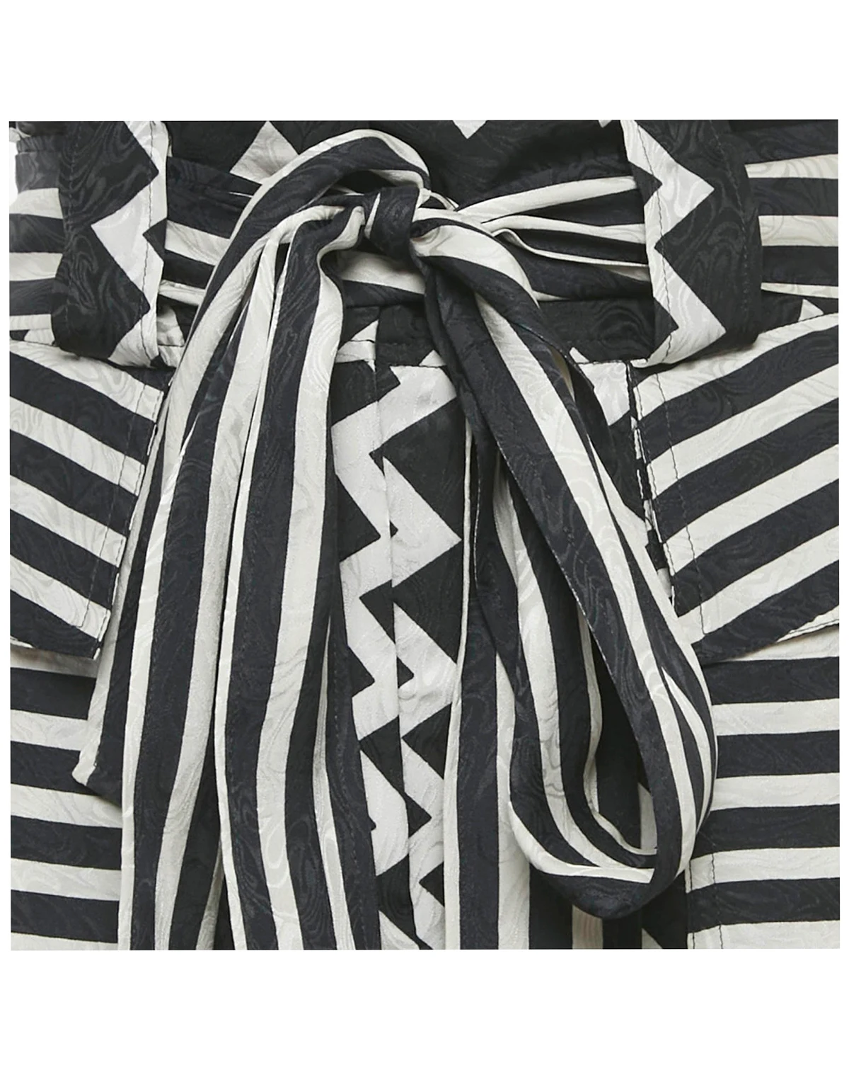 These striped jacquard silk trousers by Stella McCartney combine comfort with sharp tailoring. Featuring a belted waist and monochrome palette they re perfect for elevating everyday ensembles. Wear with pointed mules and a tucked in blouse for an effortlessly directional look.