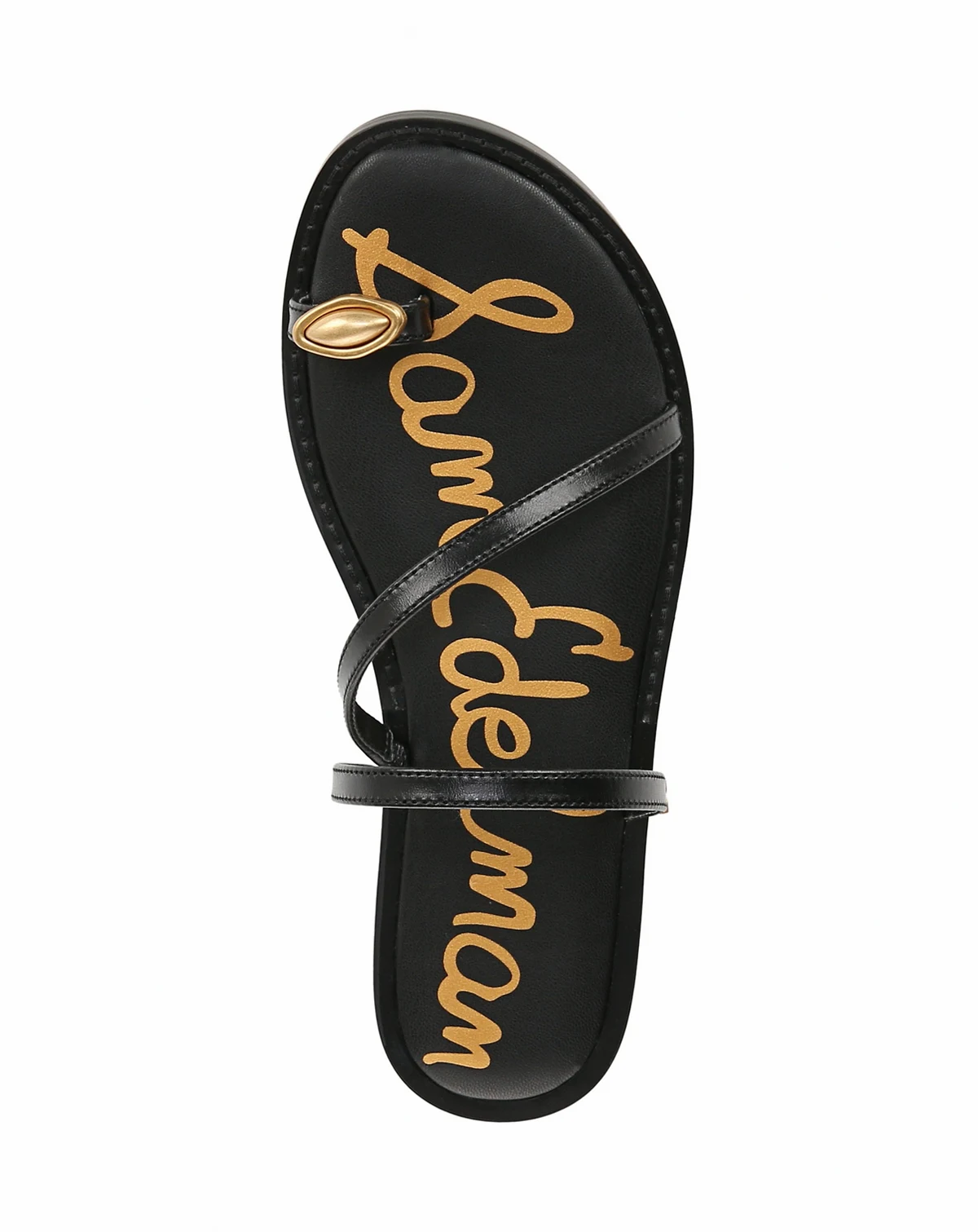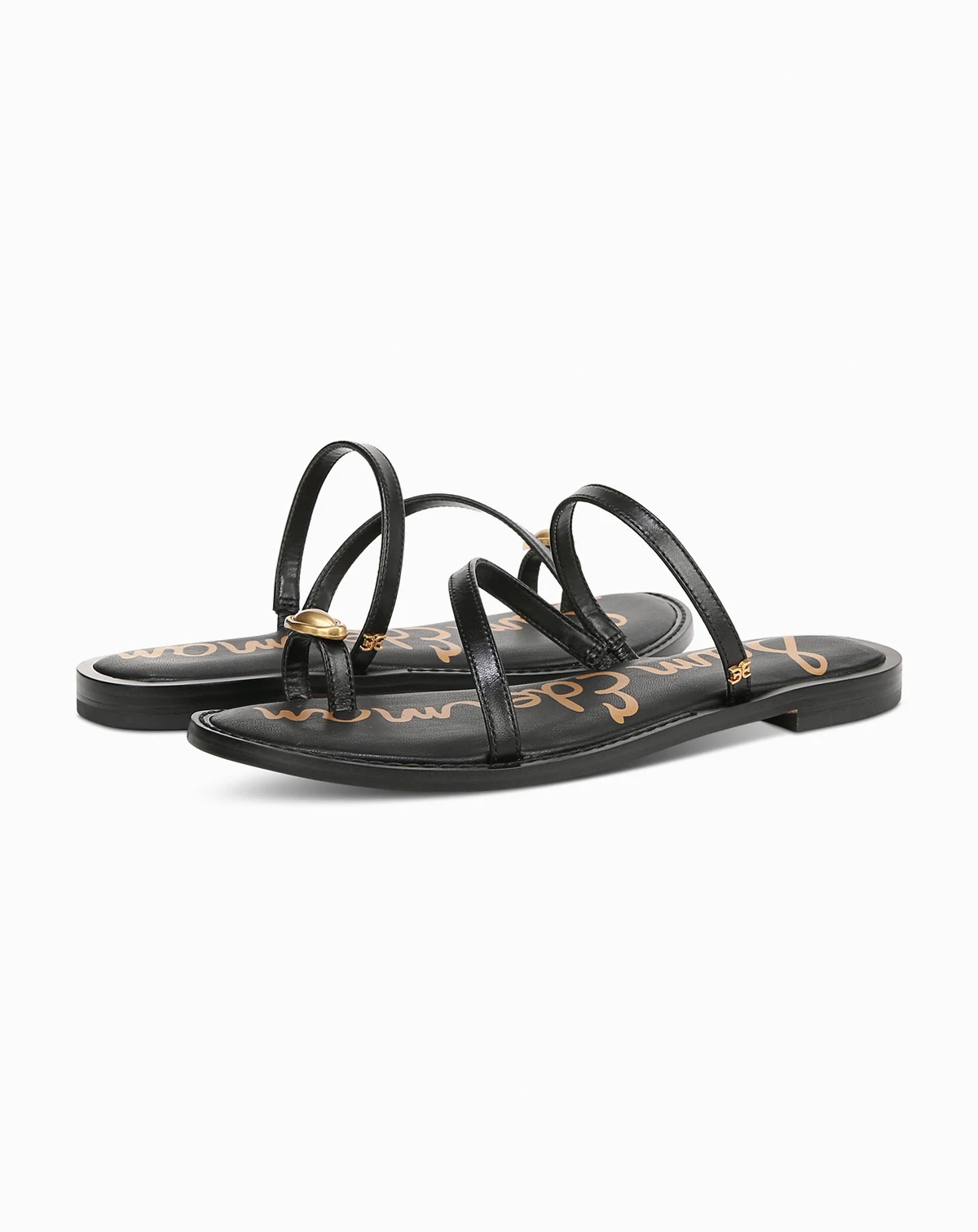 Toe rings with gold-tone hardware pair in asymmetrical style for a must-have warm-weather look in the Harlyn sandals from Sam Edelman.