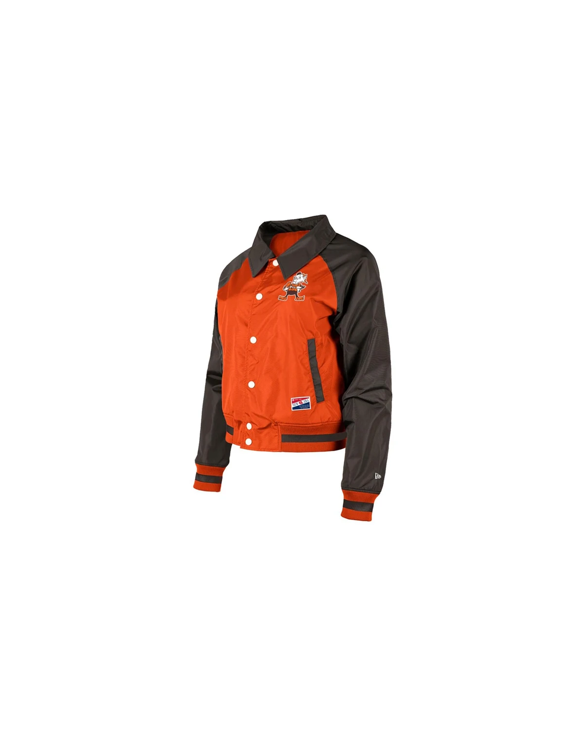 Show your Cleveland Browns spirit in style with this New Era Coaches Raglan Full-Snap Jacket. This midweight jacket features raglan sleeves and rib-knit cuffs and hem for a comfortable fit. The screen print Cleveland Browns graphics and woven jock tag proudly display your team spirit. This jacket is perfect for any Cleveland Browns fan, whether you're cheering them on at the stadium or watching from home.