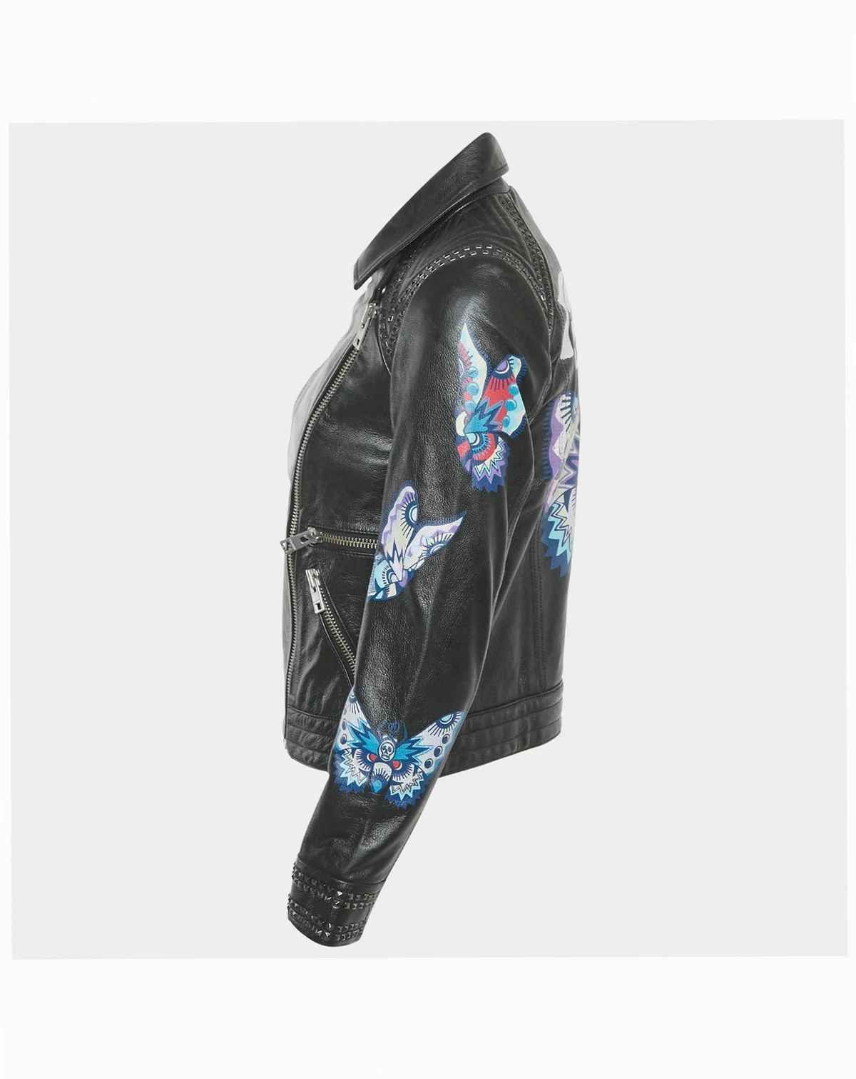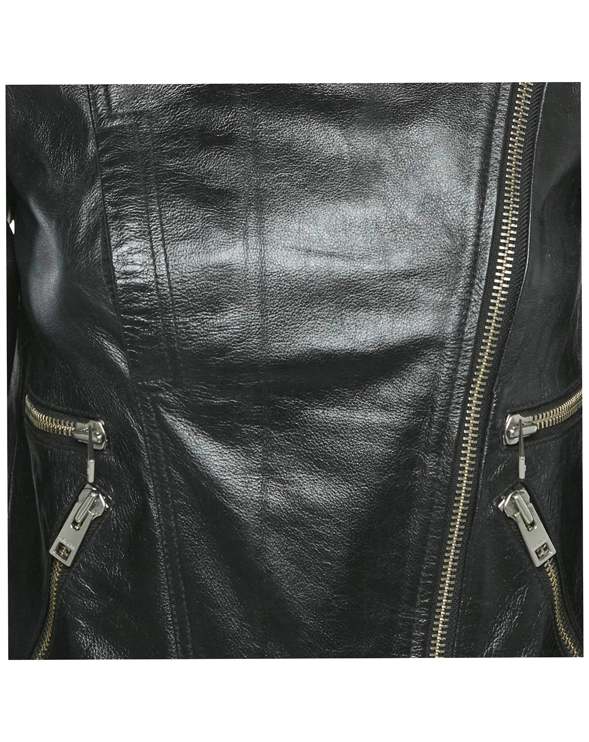 Elevate your wardrobe with this edgy black leather biker jacket. The sleek zip closures embody both style and practicality perfect for casual chic moments.