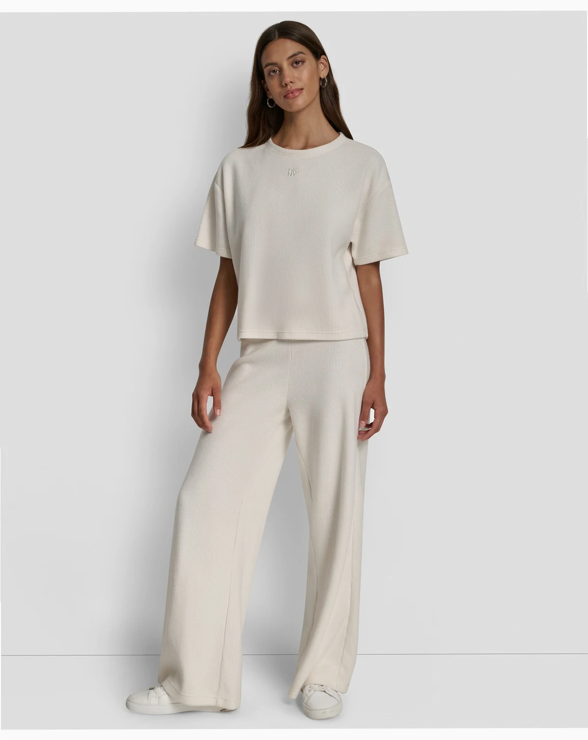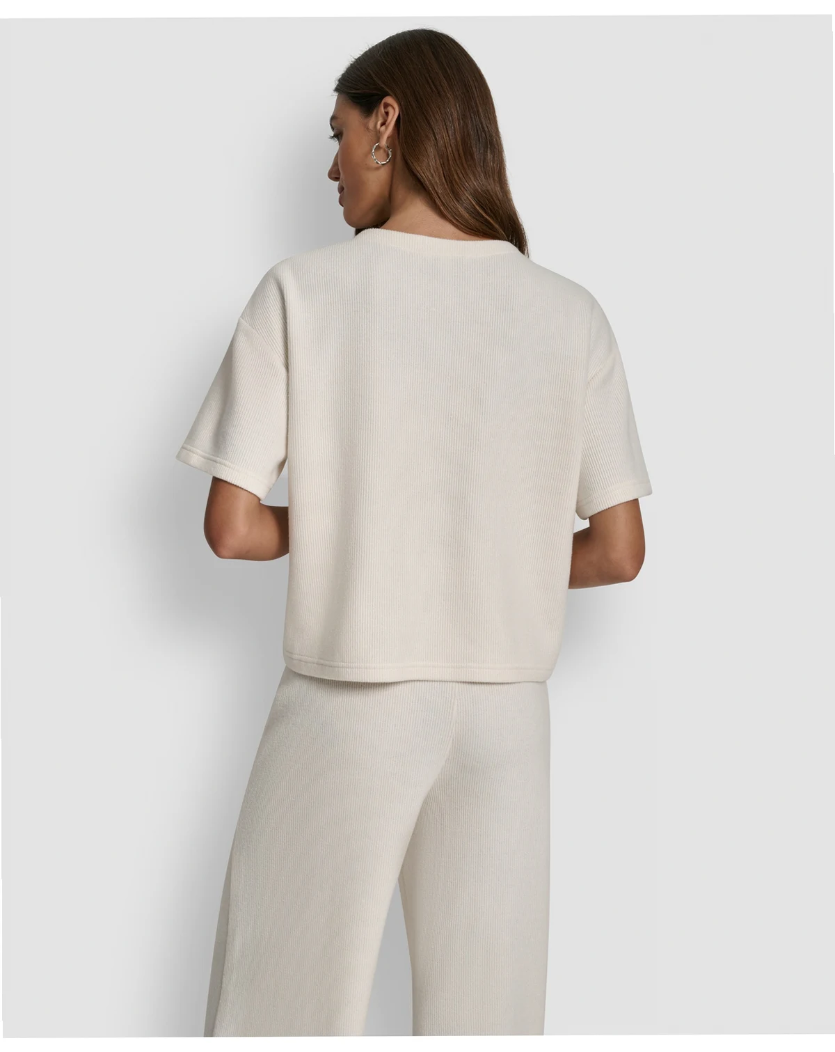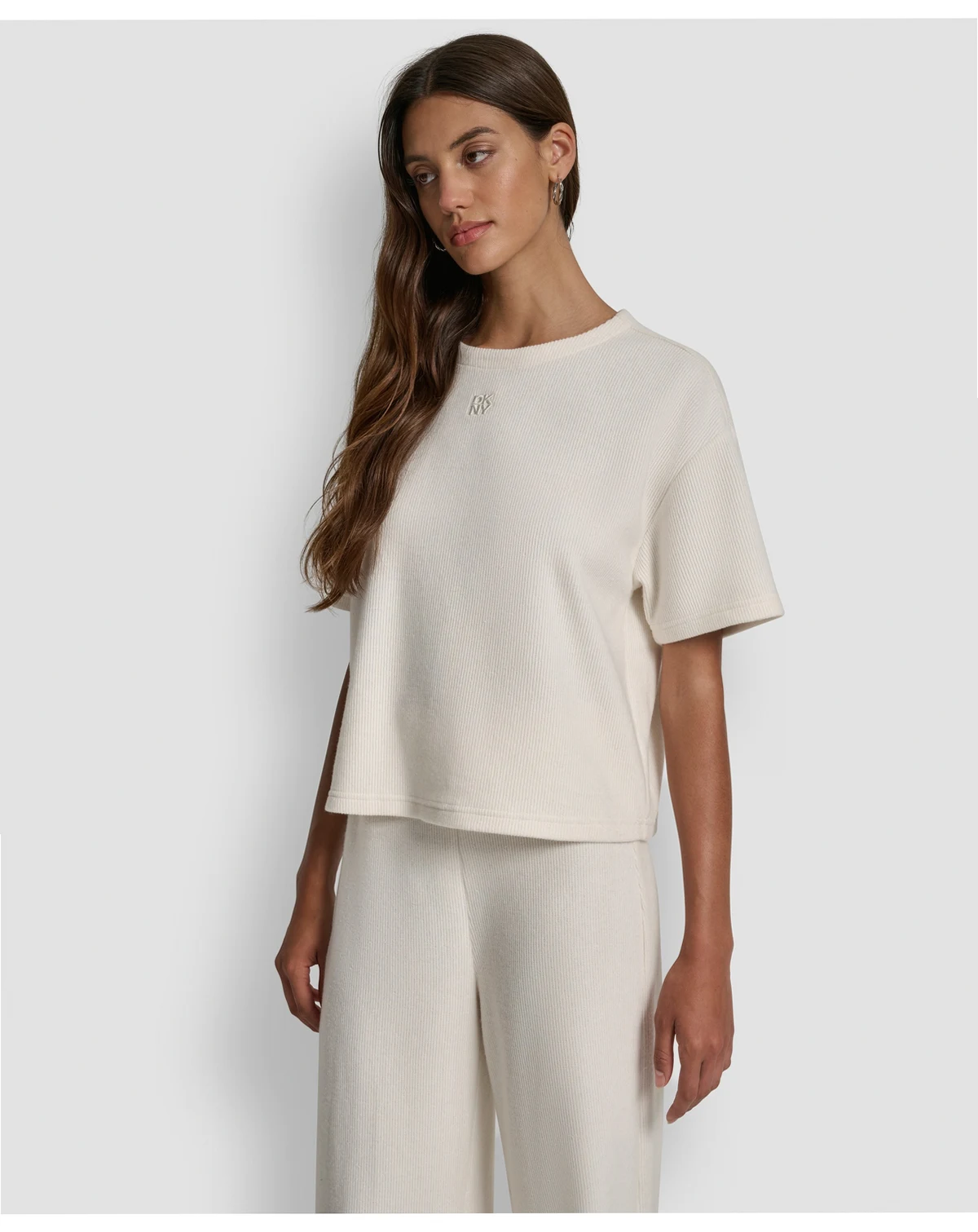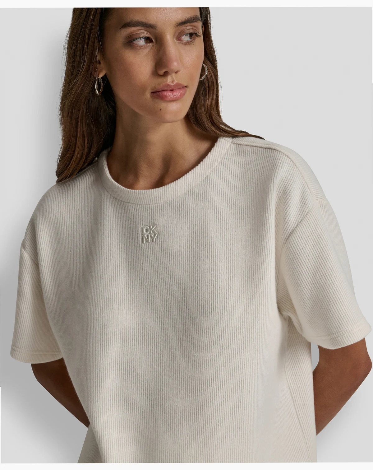 Achieve an easy, modern look with a relaxed boxy fit in this T-shirt from DKNY Jeans. Featuring a half-sleeve design, it provides a comfortable and casual style.