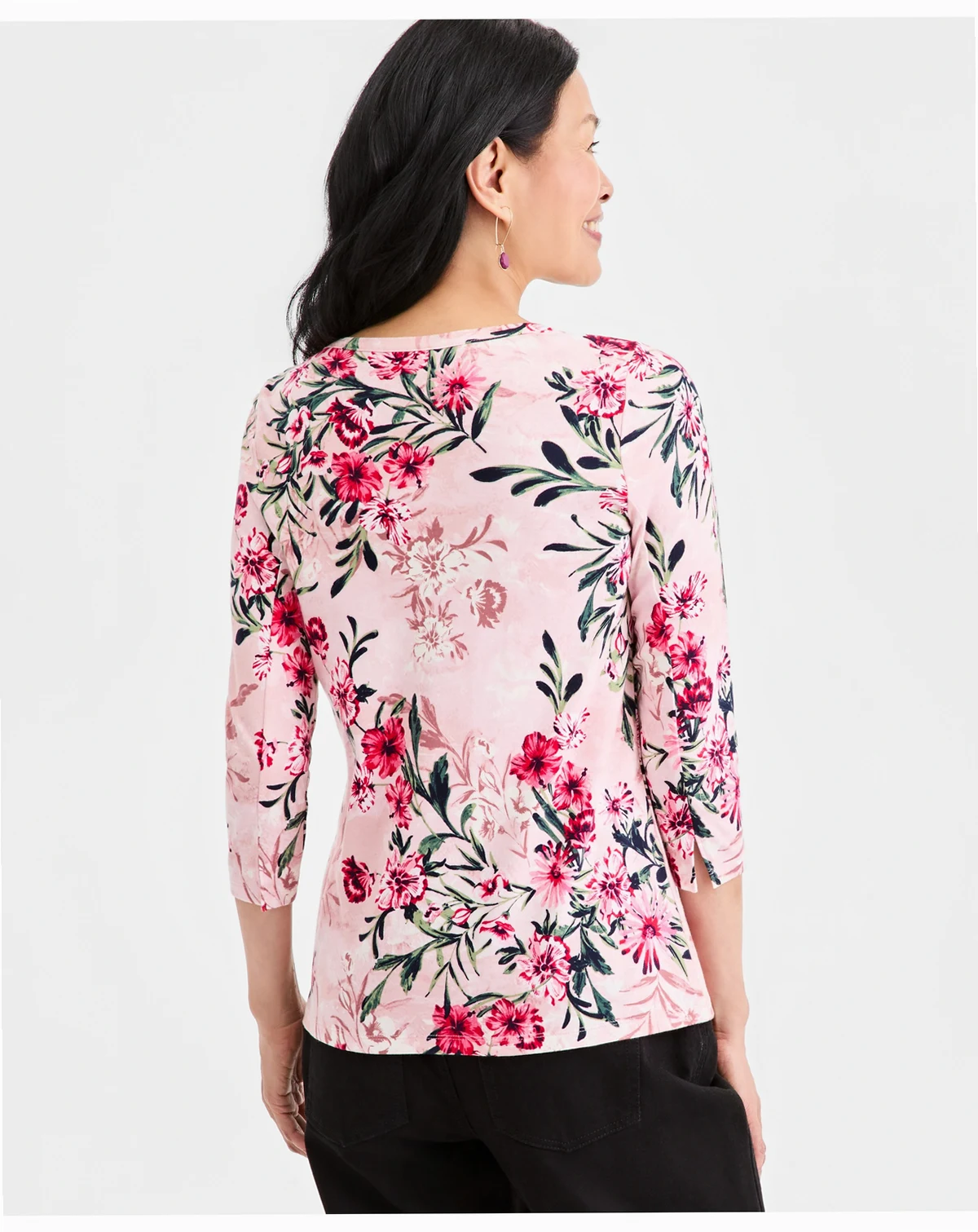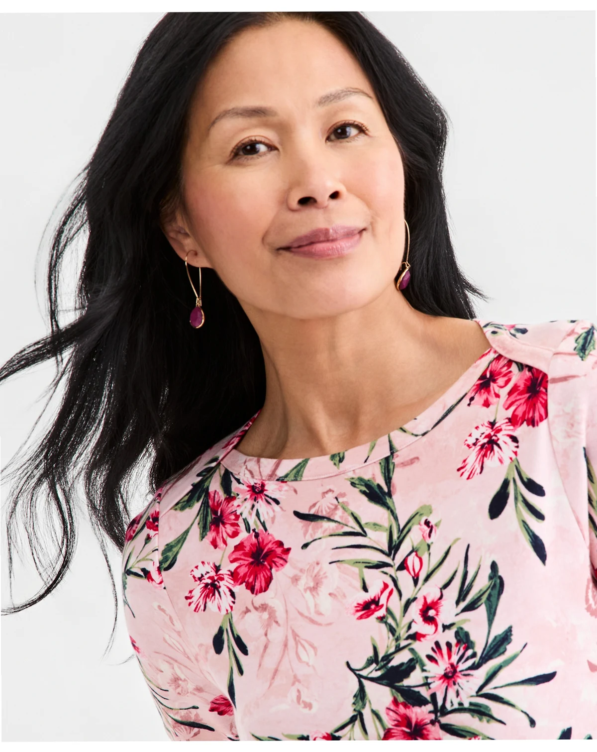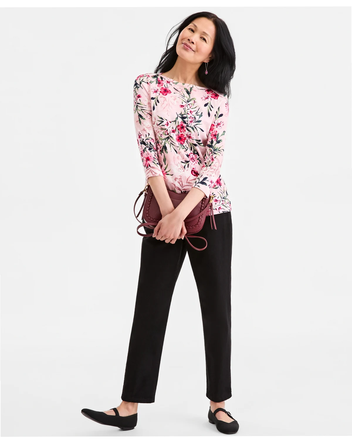 Petite Floral Print Boat Neck Top, Macy's Exclusive