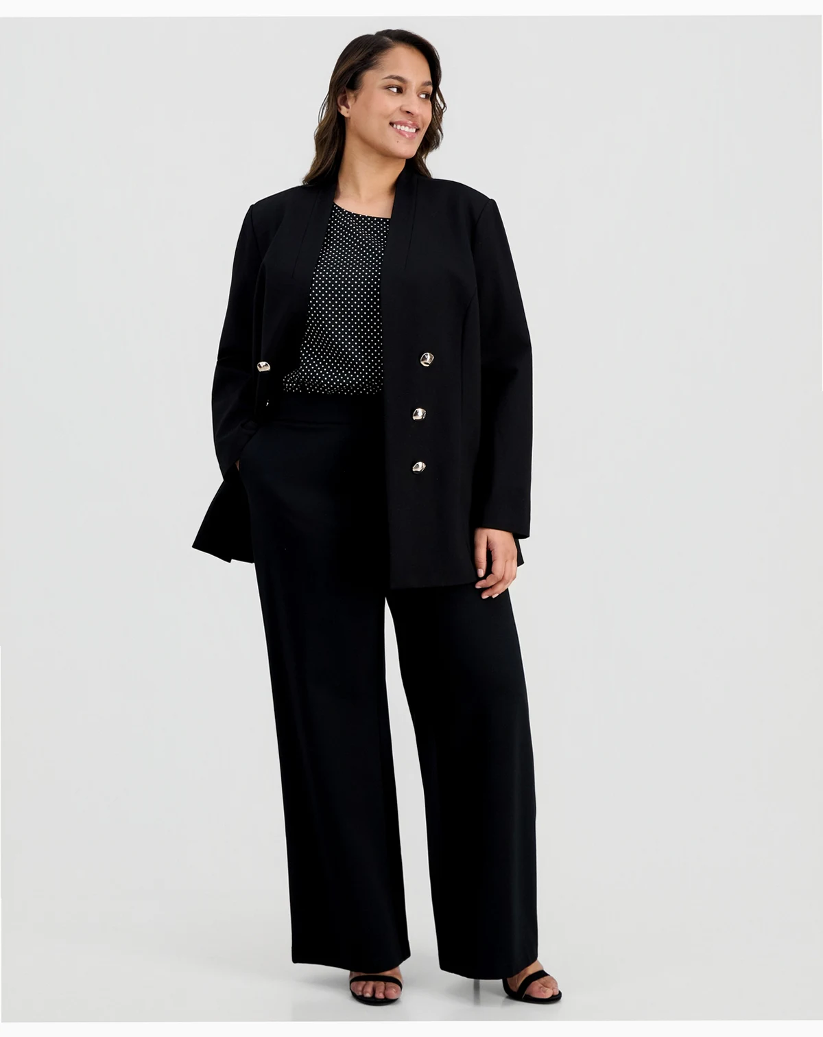 A classic boat neck elevates this plus size top from Anne Klein, pair with your favorite pants for a chic finish.