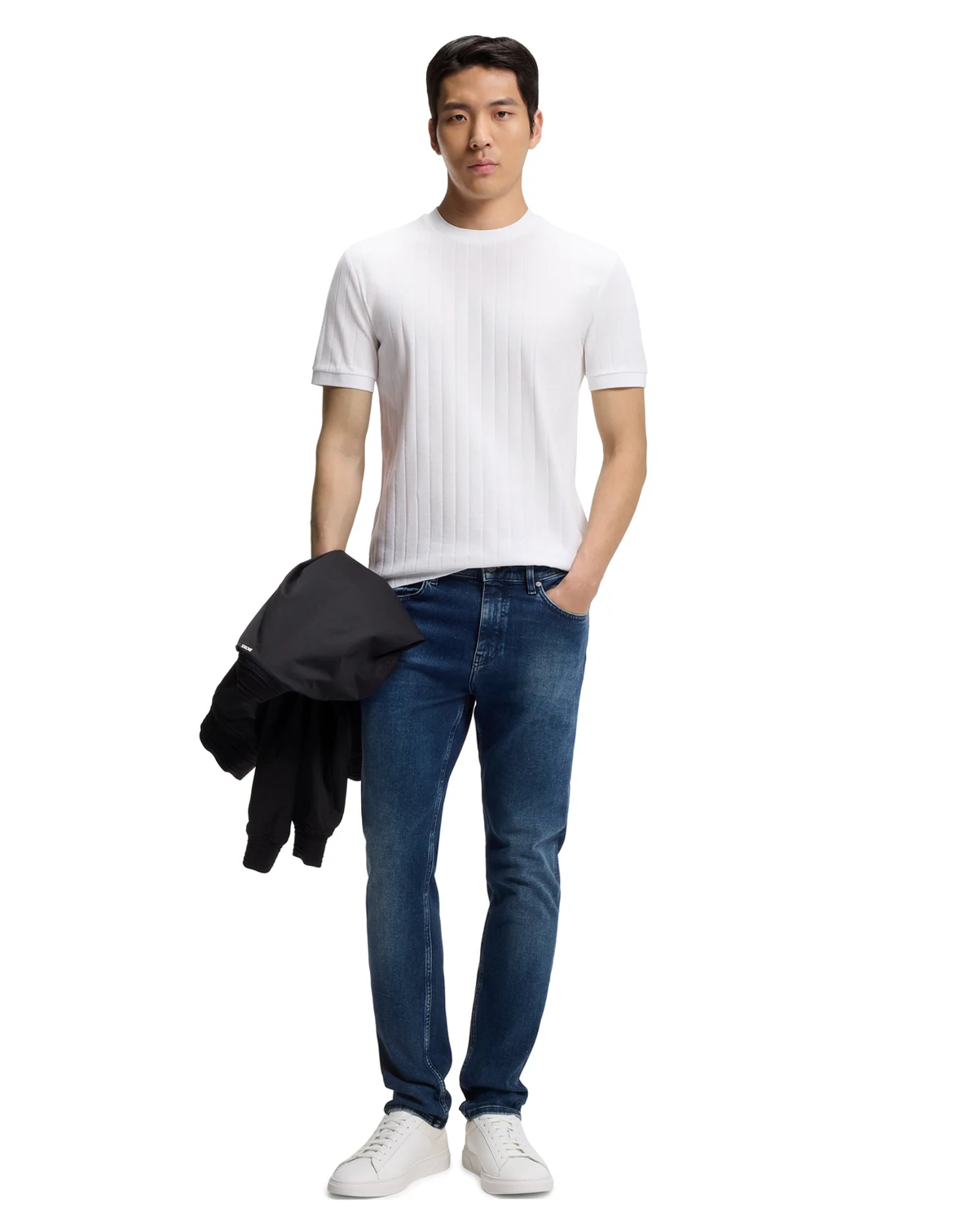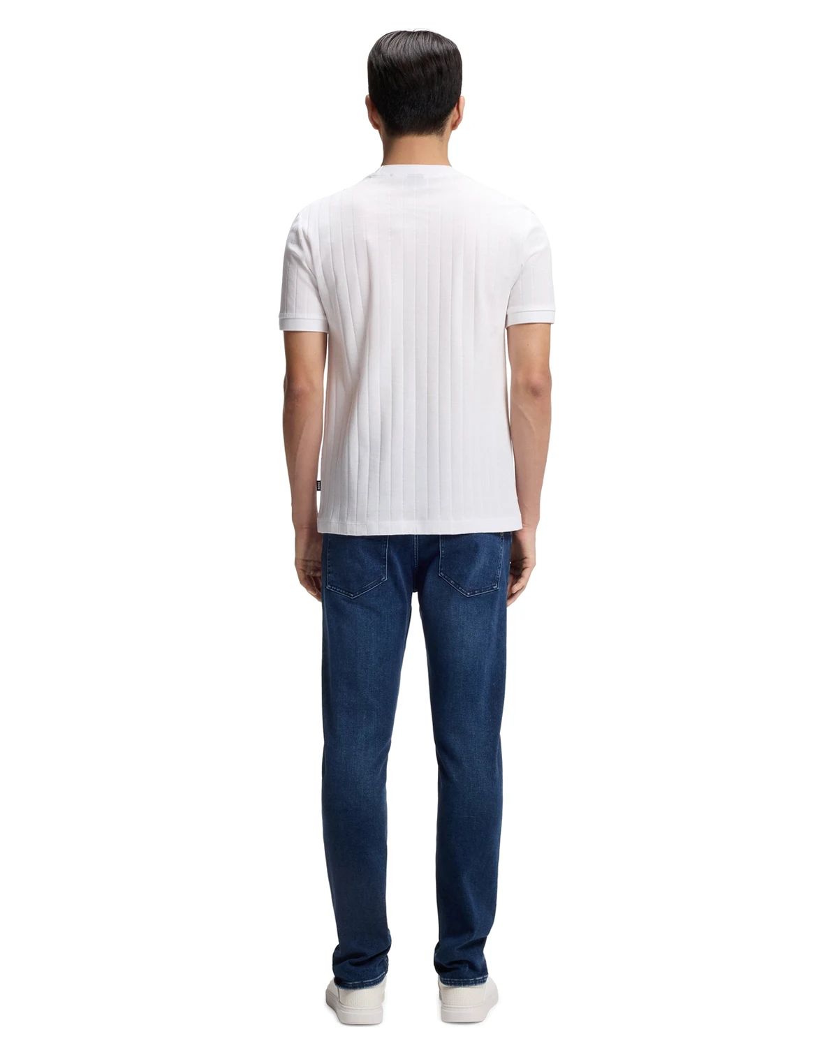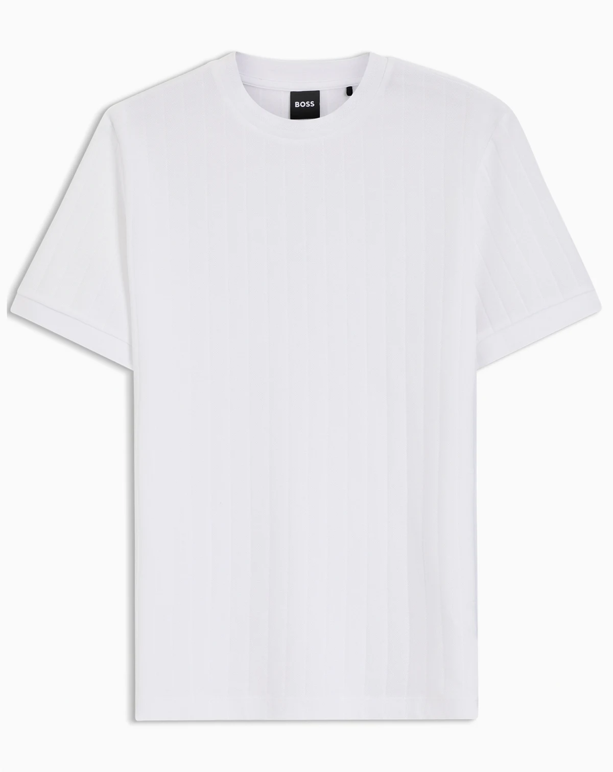 Crafted in mercerized cotton for luxurious softness, this BOSS Menswear T-shirt features structured vertical stripes.