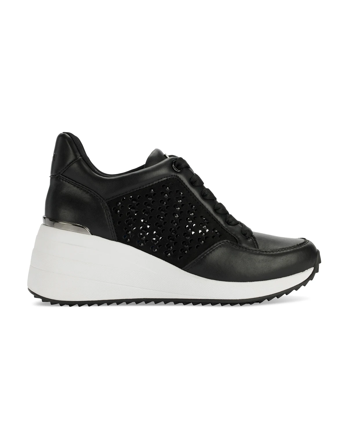 DKNY elevates a casual lace-up with sporty wedge heels and sparkling accents in the street-savvy Kalinda sneakers.
