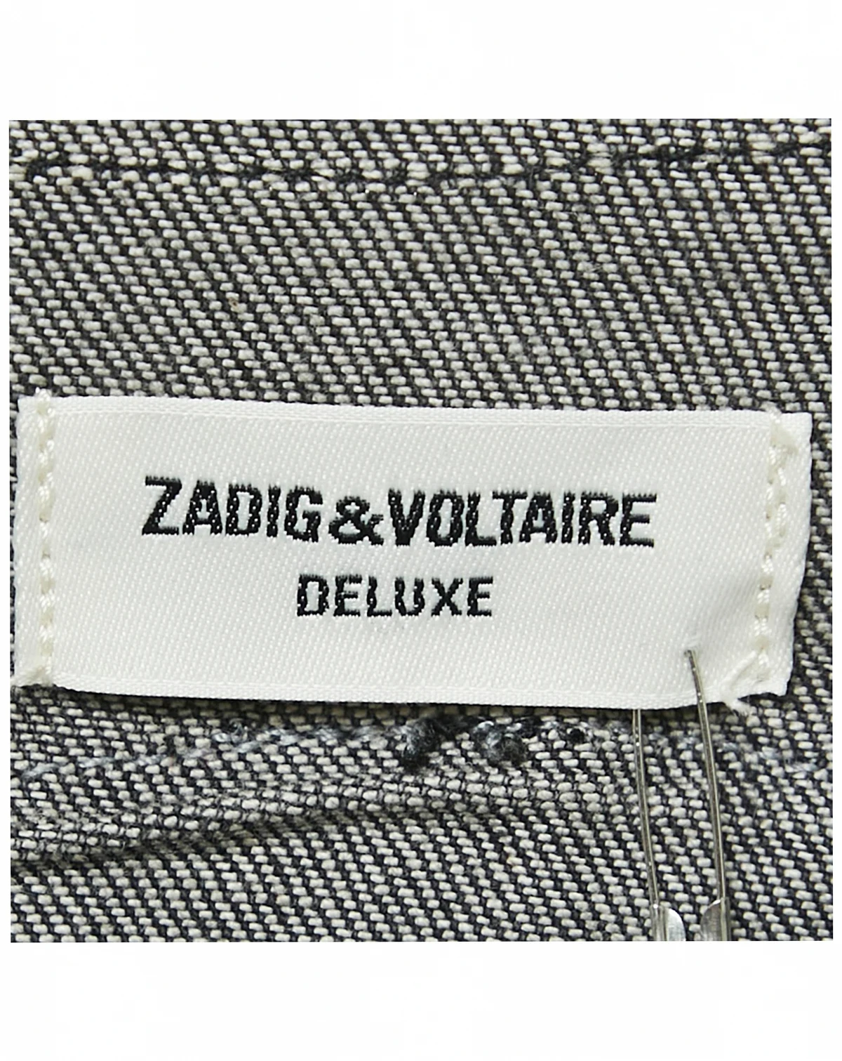 The Zadig and Voltaire jacket is a cool contemporary piece that effortlessly combines edgy style with casual elegance. The washed denim finish offers a worn in look while the collar neck adds a touch of sophistication. This jacket is the perfect addition to a relaxed yet fashionable ensemble ideal for layering over both casual and dressy outfits.
