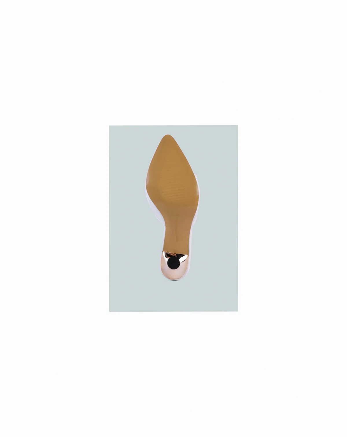 High heels exude sharp sophistication, the perfect party companion for your weekend wardrobe. And their The metallic heel detail adds a touch of elegance. Ideal shoe for any occasion to sophisticated date nights to wedding guest outfits! Type: Sandals Upper Material: Patent Faux Leather Light Cushion Insoles Outer Sole: TPR Open Pointed Toe Metallic High Heel SH3008