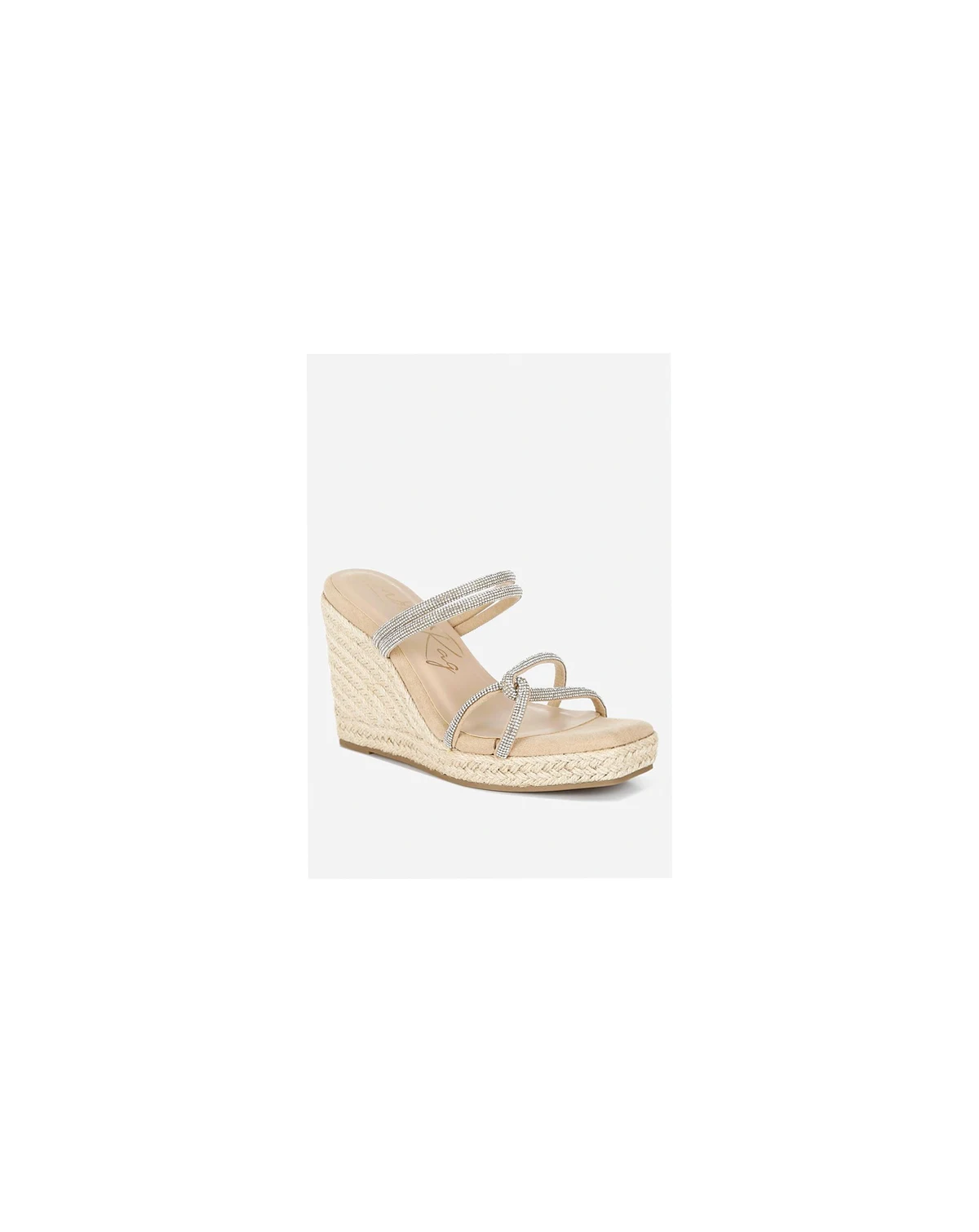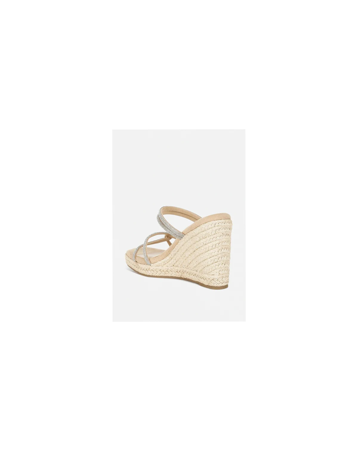 The slip on espadrilles have a romantic flair with the braided detail on the wedge heels. The rhinestone embellishments on the strappy vamp are dainty and add a touch of bling to the mix. A must-have summer vacay pair with comfortable cushion insoles that cut strain and offer a relaxed fit. Type: Espadrilles Sandals Upper Material: Microfiber Outer Sole: TPR Open Square Toe High Wedge Heels Slip On Design Comfortable Cushion Insoles Heel Height: 3 inches SH4795