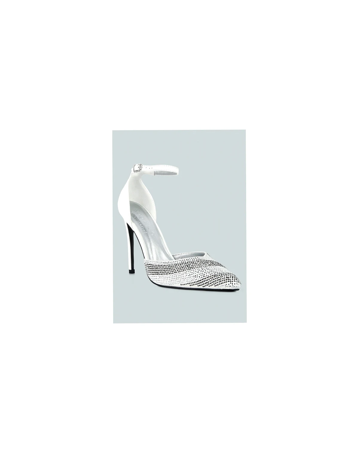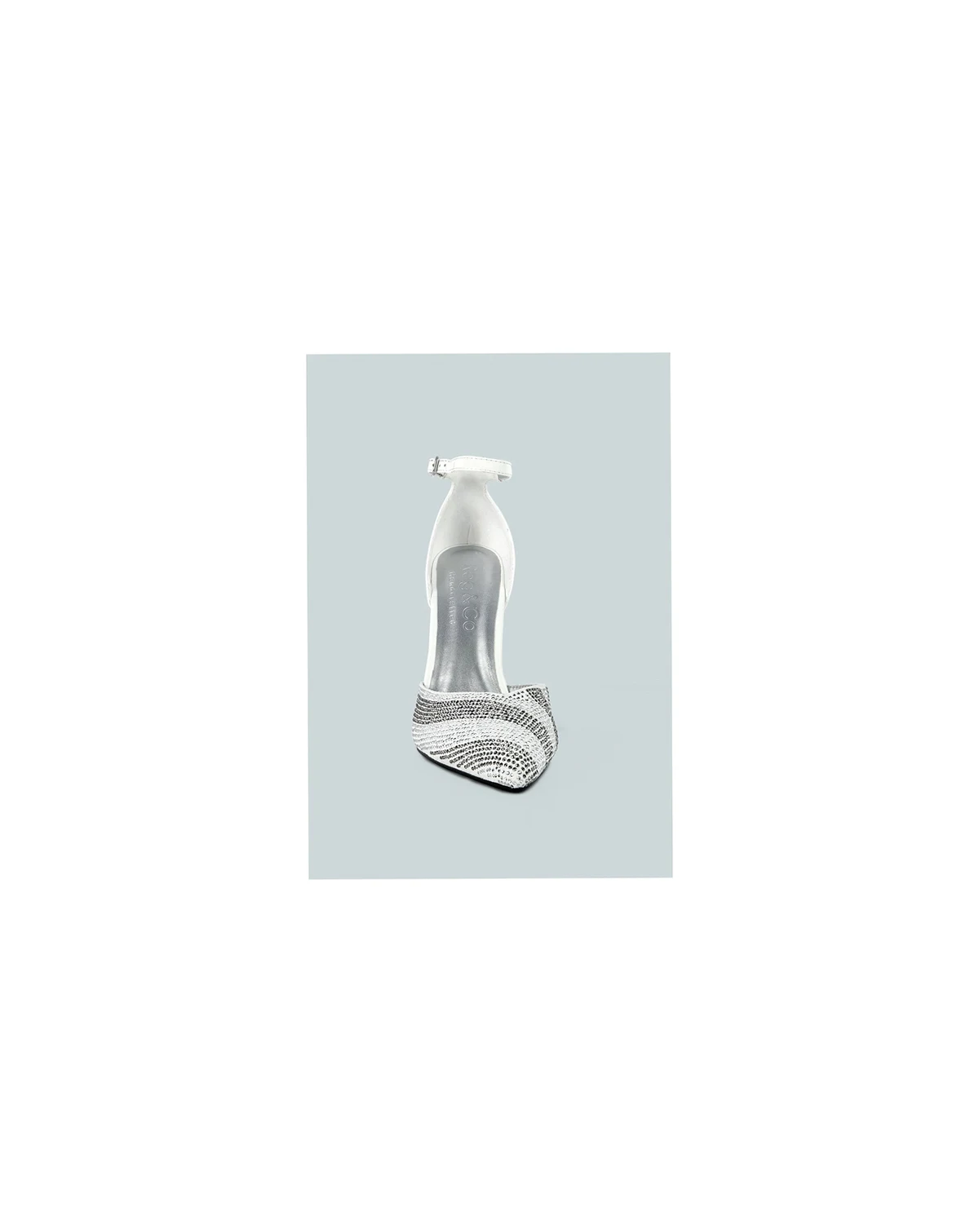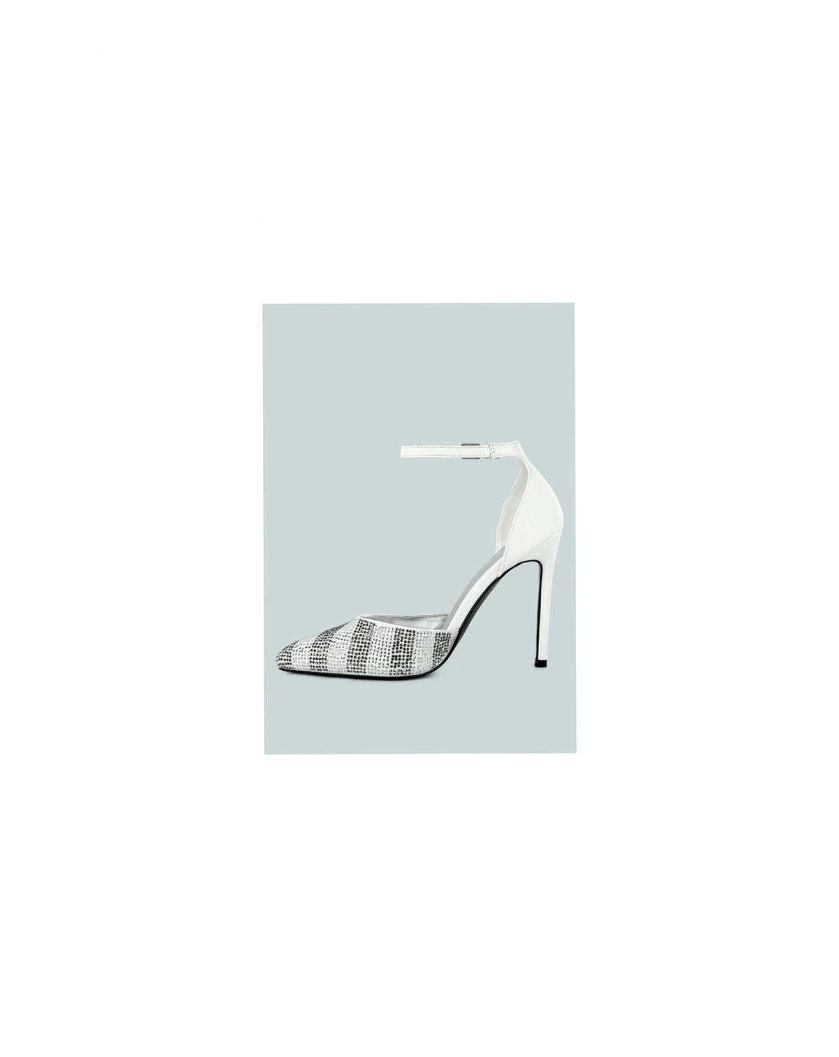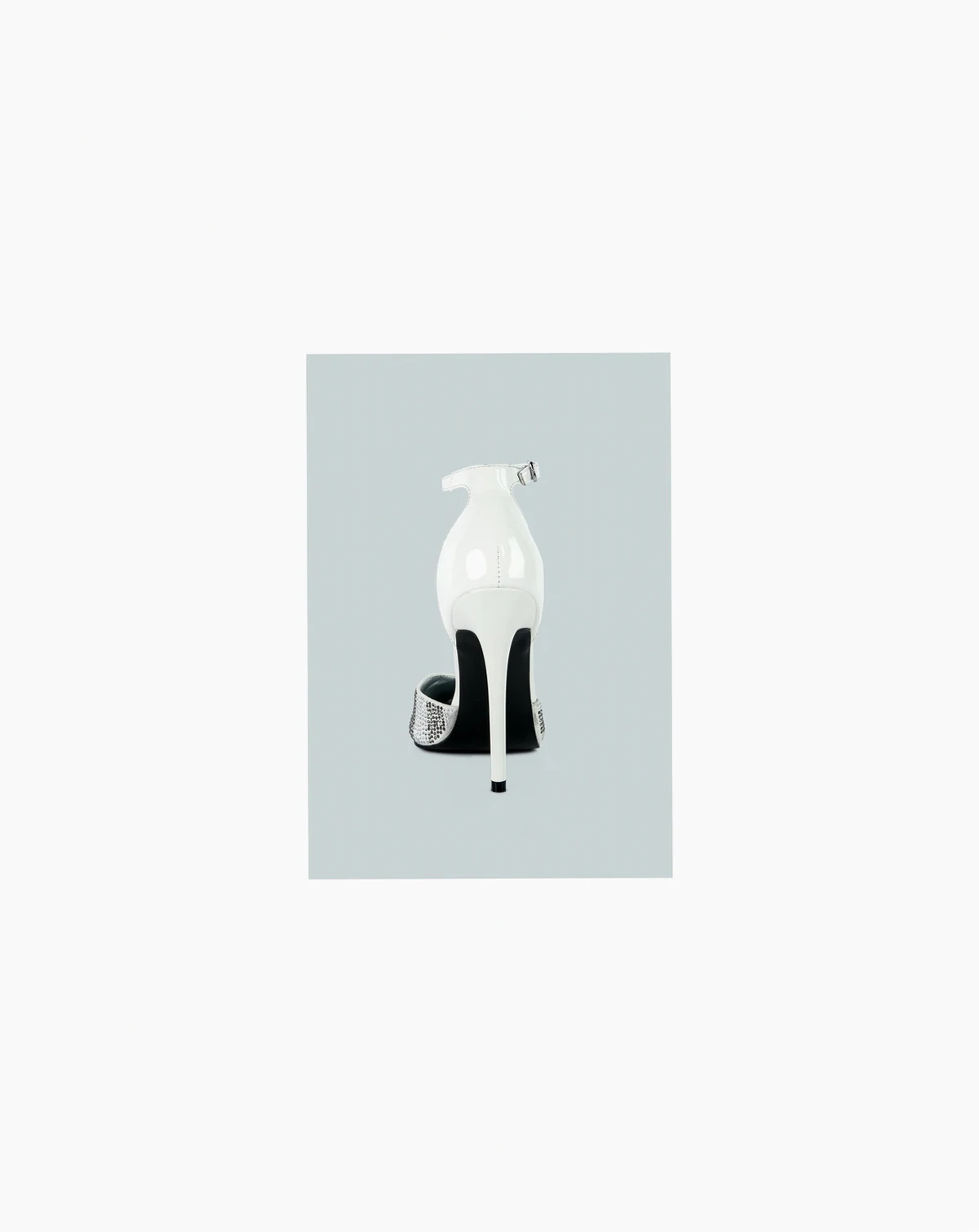 The sandals are beguiling with their beautifully set rhinestone embellishments, the patterned vamp is an intriguing element and levels up the aesthetic of the high heels. The stiletto sandals are also comfortable and would pair well with any fancy outfits for parties such as weddings, bachelorette, and even a night out with your beloved. Type: Sandals Heel Type: Stiletto Heel Heel Height: 4 Inches Closed Pointed Toe Pin Buckle Fastening Upper Material: Patent Leatherette Rhinestone Embellishment Lightly Cushioned Insole Out Sole: Rubber Party Wear Dress Sandals RCSH3847