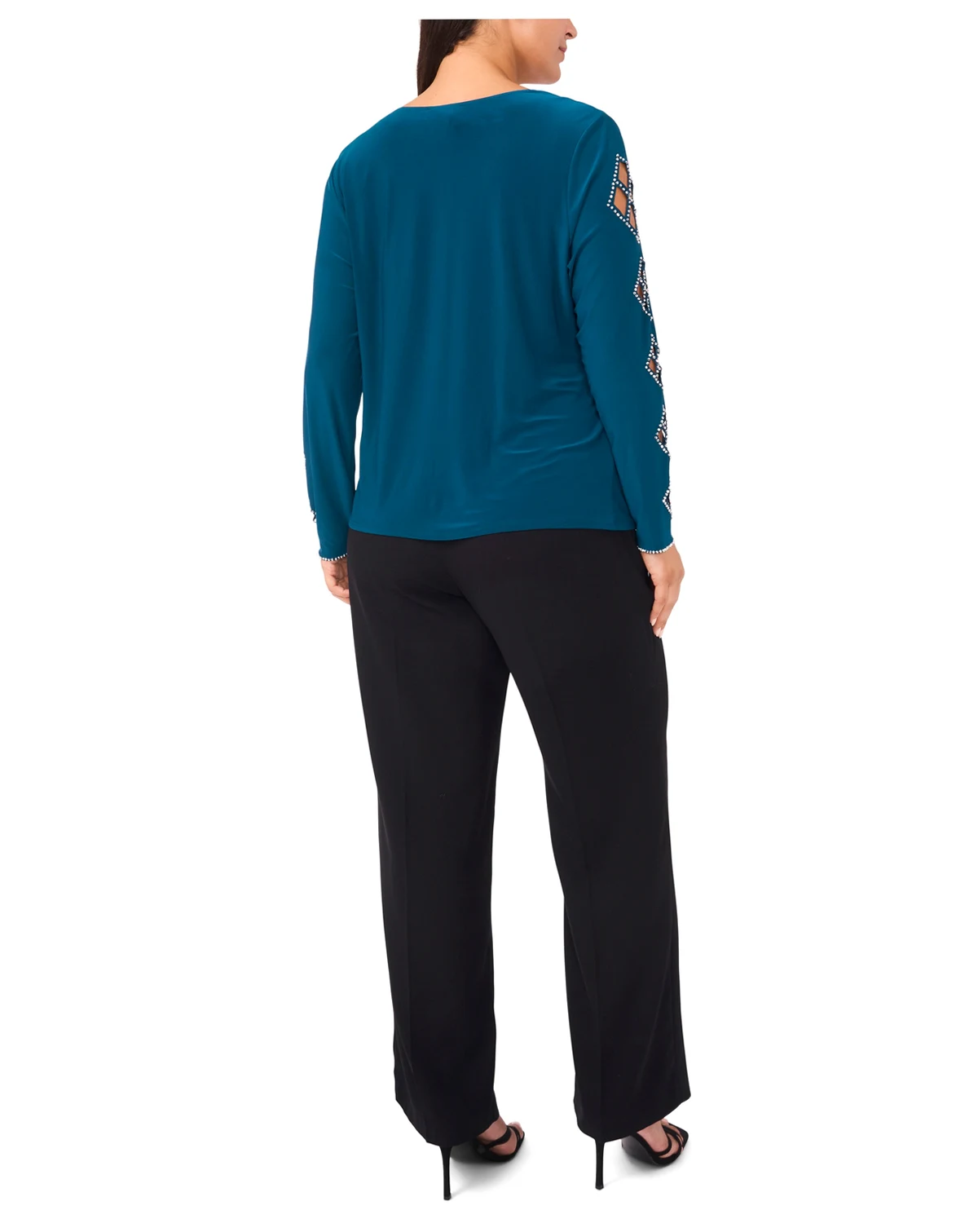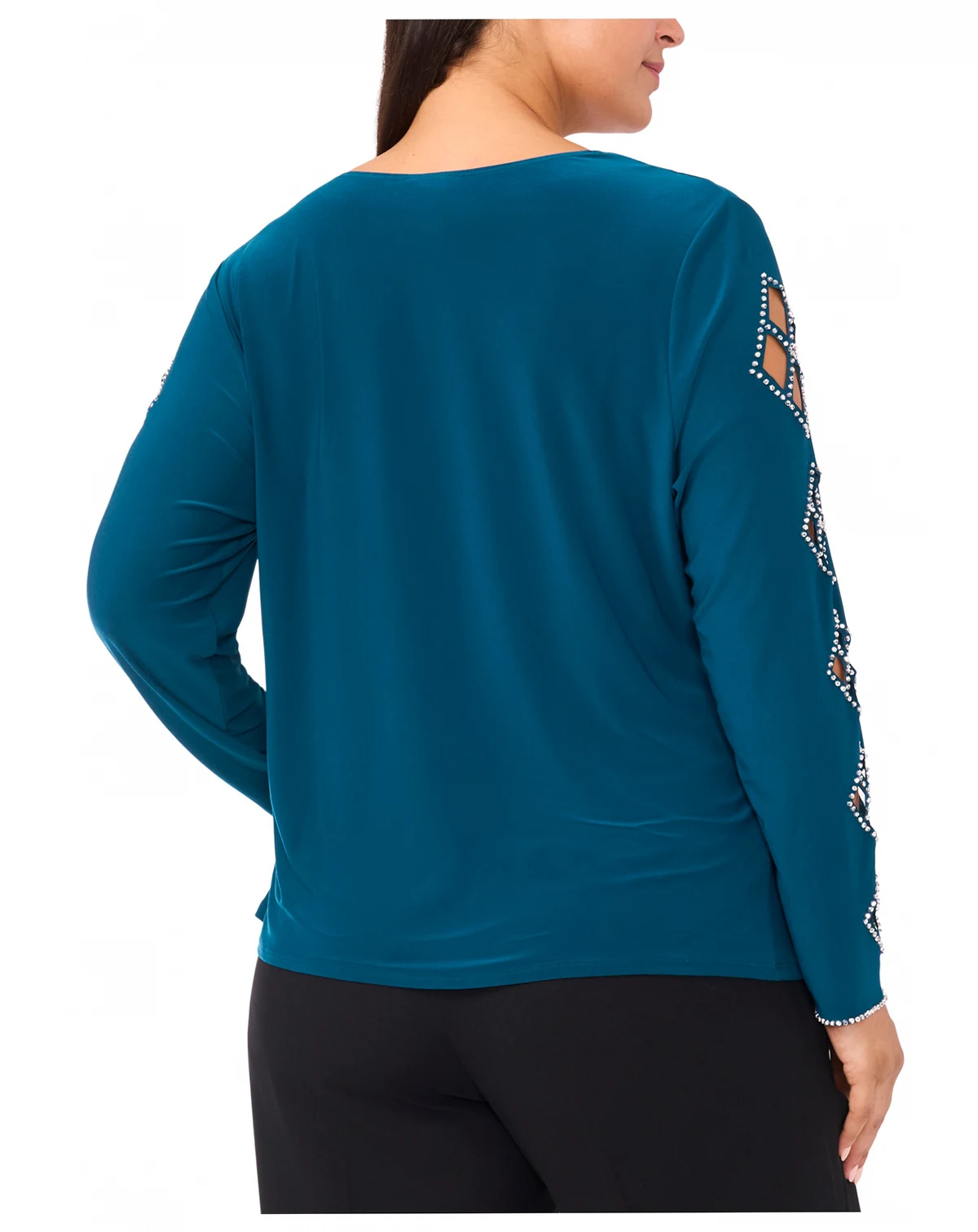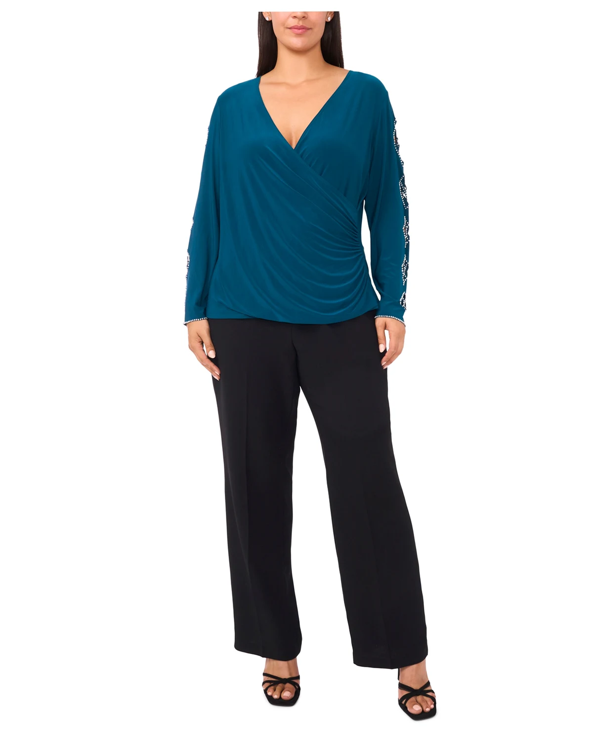 Flatter your figure in this faux wrap top from MSK. A V-neckline and beaded cut-out sleeves create an alluring and stylish design. The surplice front offers a universally becoming look for various body types.