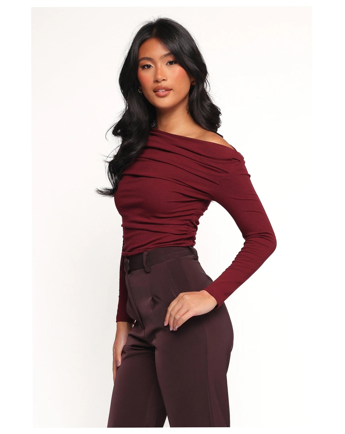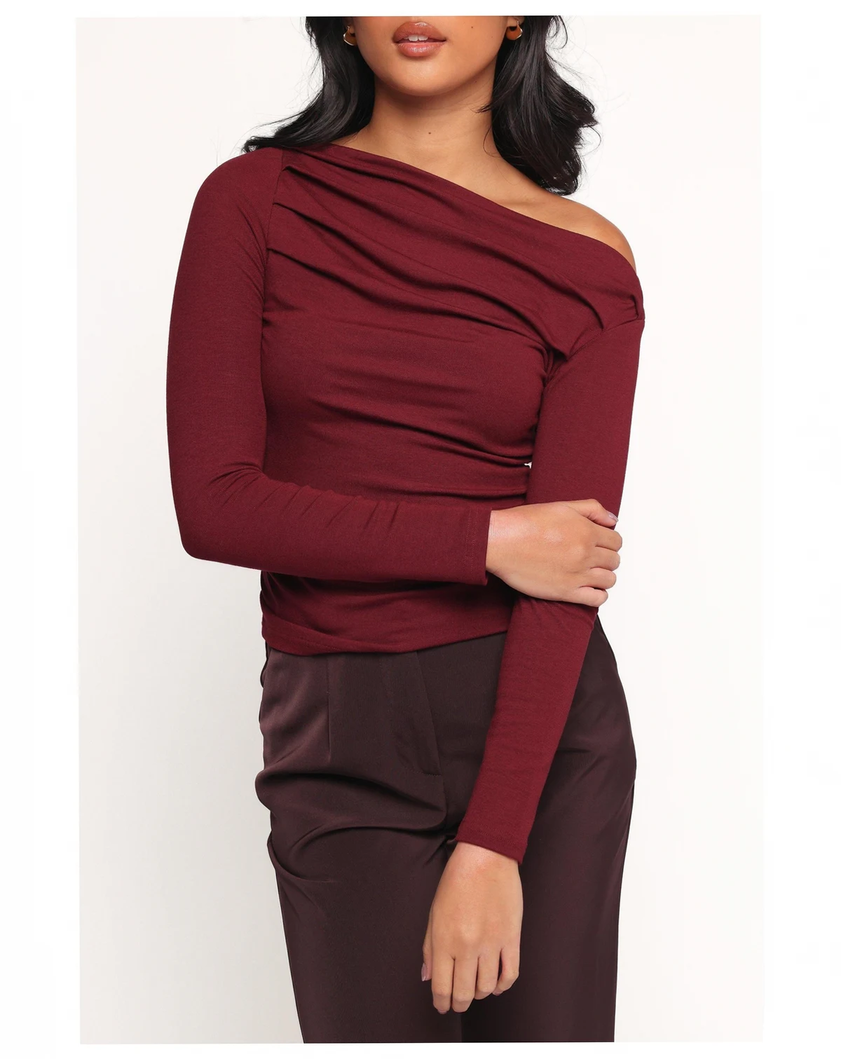Introducing our elegantly designed Cer Top, a perfect blend of sophistication and modern flair. This top features an asymmetrical neckline that adds a unique and stylish touch to your wardrobe, effortlessly drawing attention to your shoulders and collarbone.