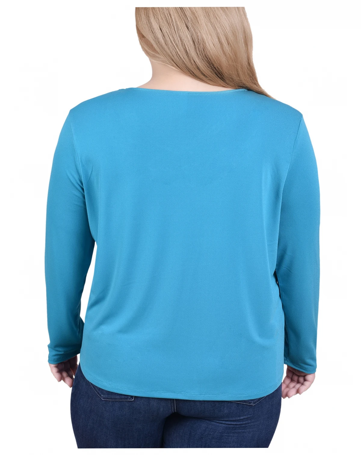 Plus Size Long Sleeve Jeweled Neck Top