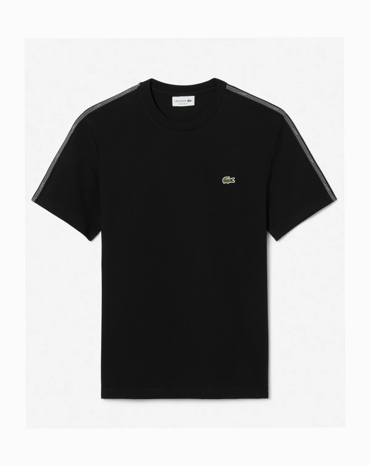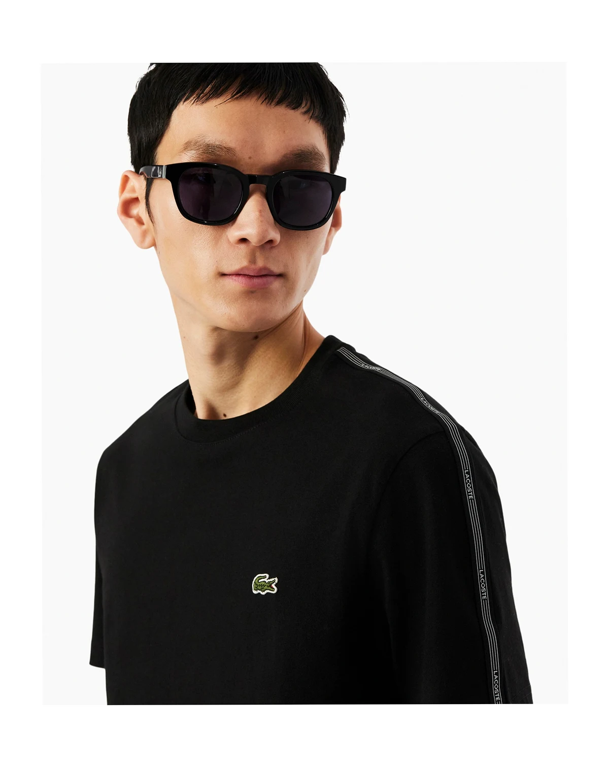 Upgrade your basics with this Lacoste T-shirt, designed in a regular fit with short sleeves for a comfortable, everyday wear. Finished with signature wording tape along the shoulder line, it adds a subtle sporty touch while combining effortless style and all-day ease.