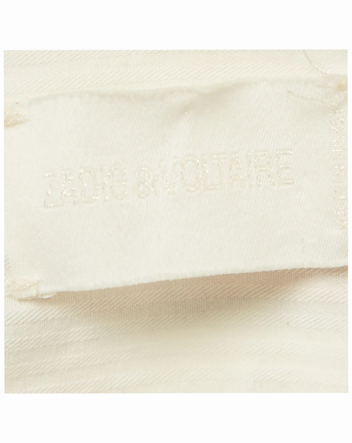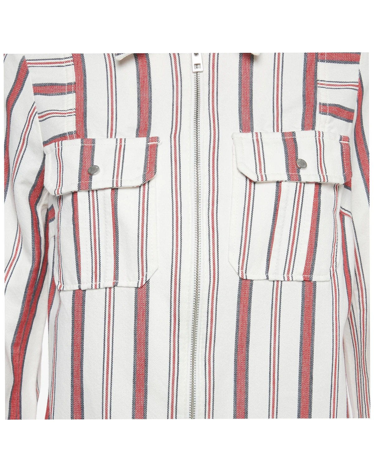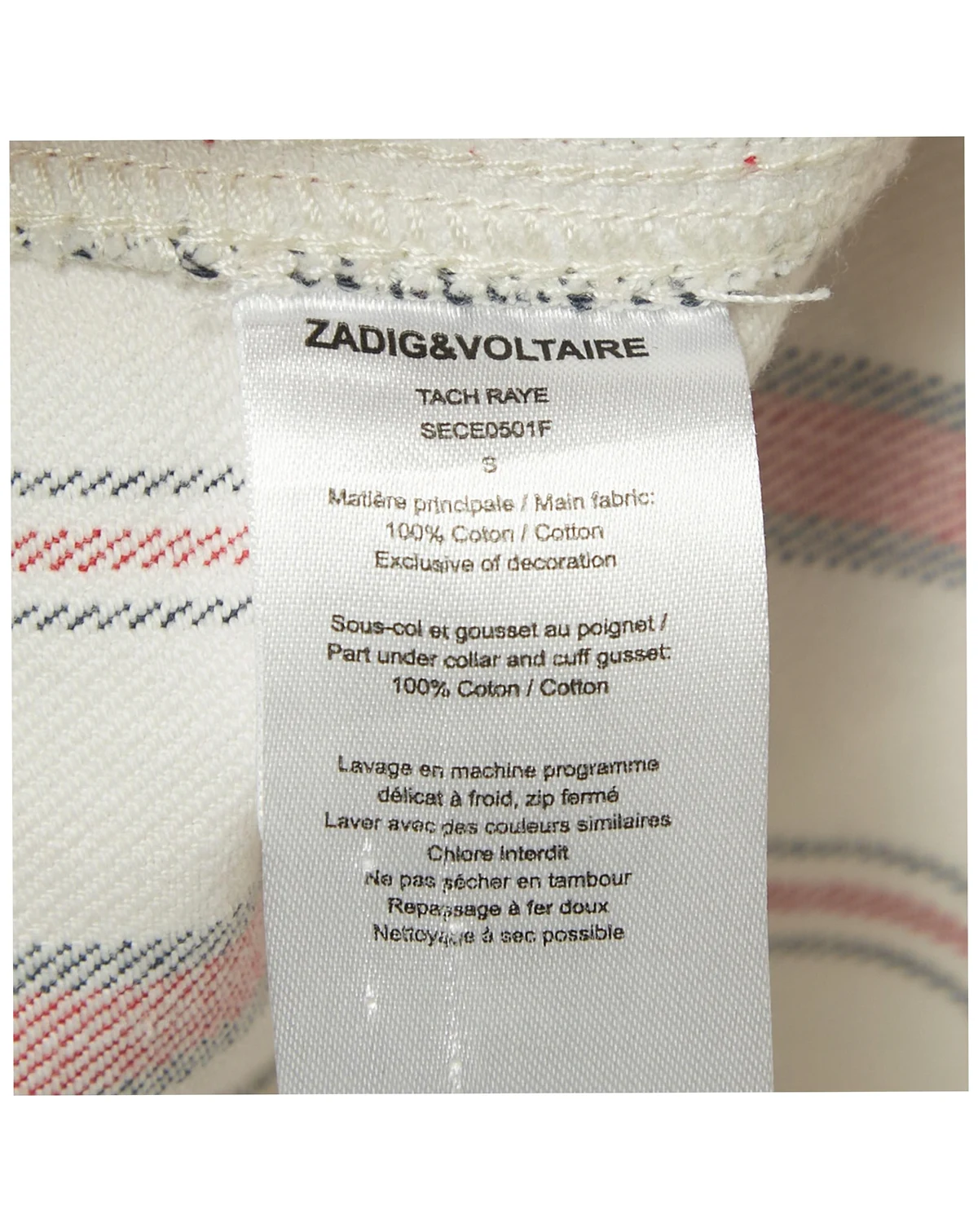 Zadig and Voltaire brings a rock Parisian edge to a classic striped cotton jacket. Clean lines and subtle raw edges keep it relaxed yet polished. Throw it over a camisole and distressed denim for a signature high low contrast.