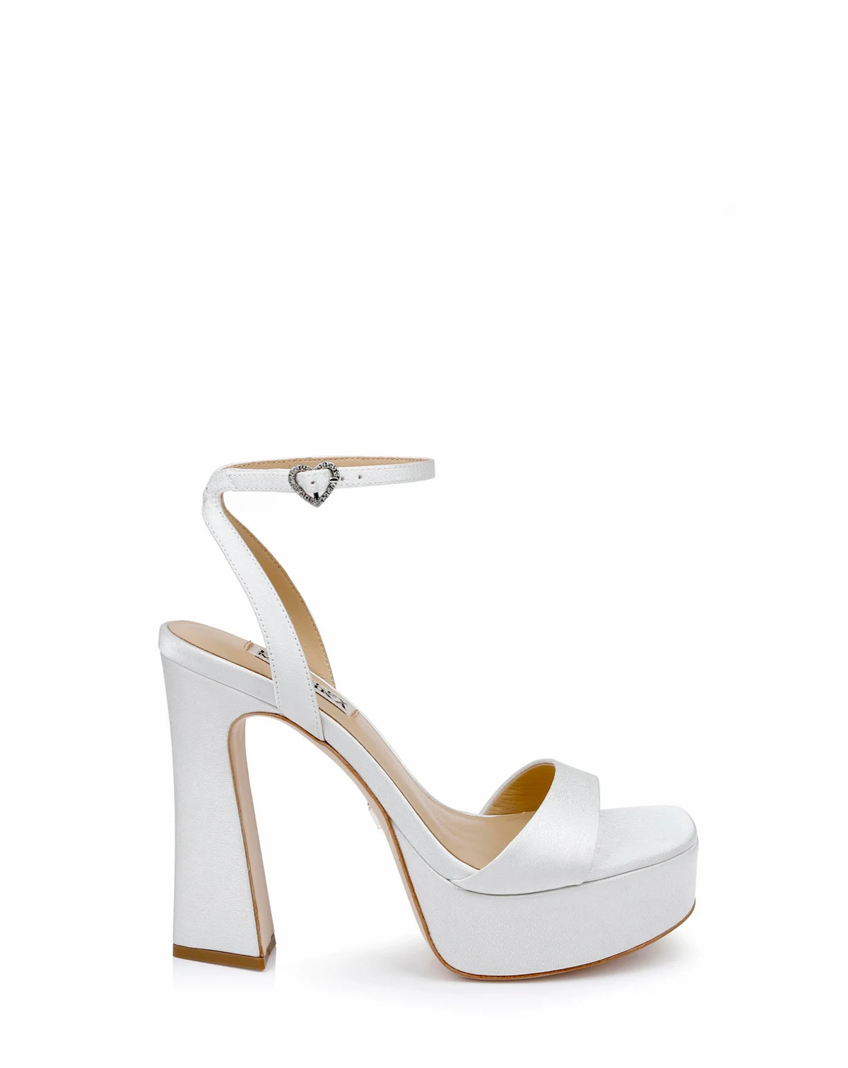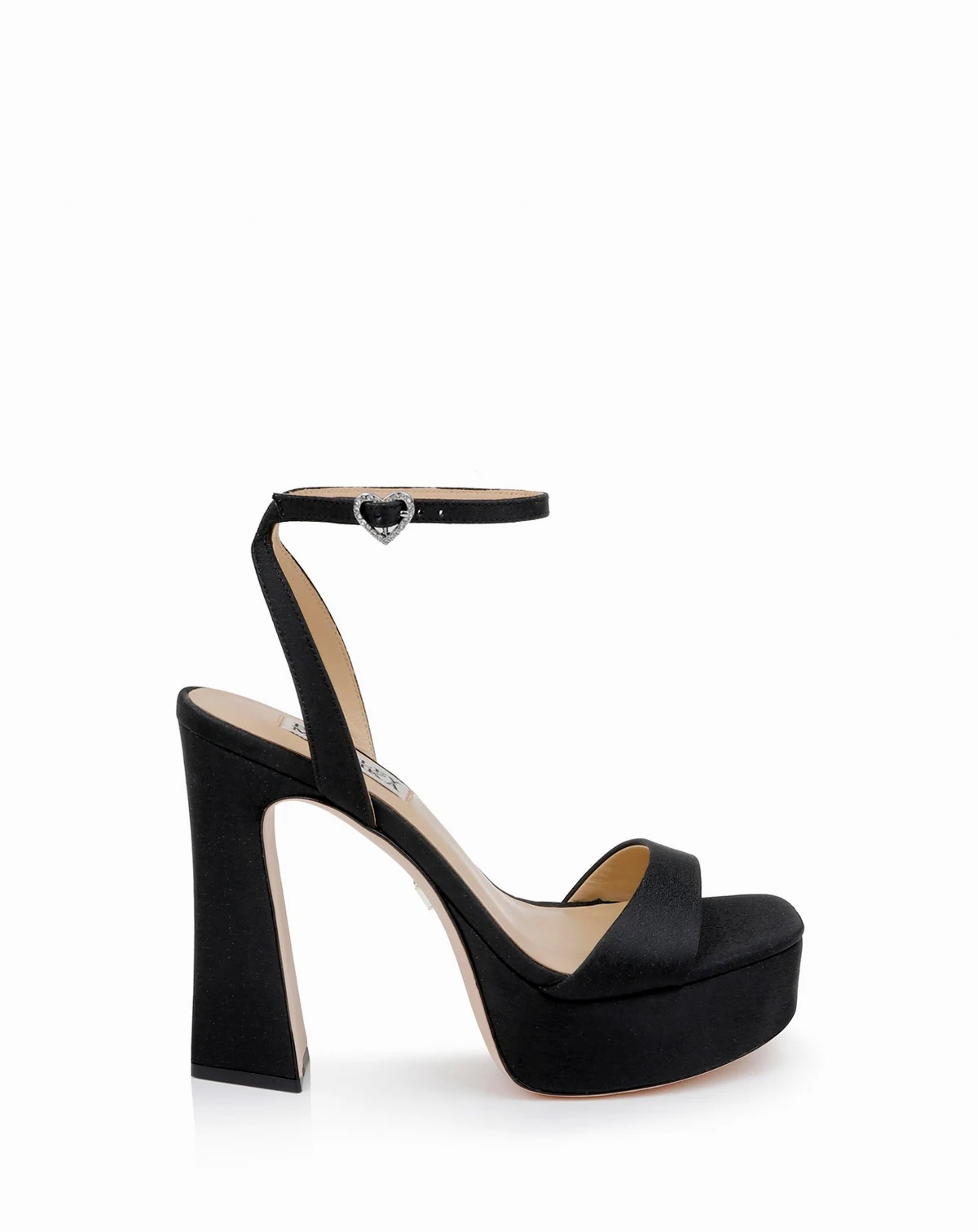 This day to evening platform sandal has a touch of sparkle from the heart-shaped buckle.