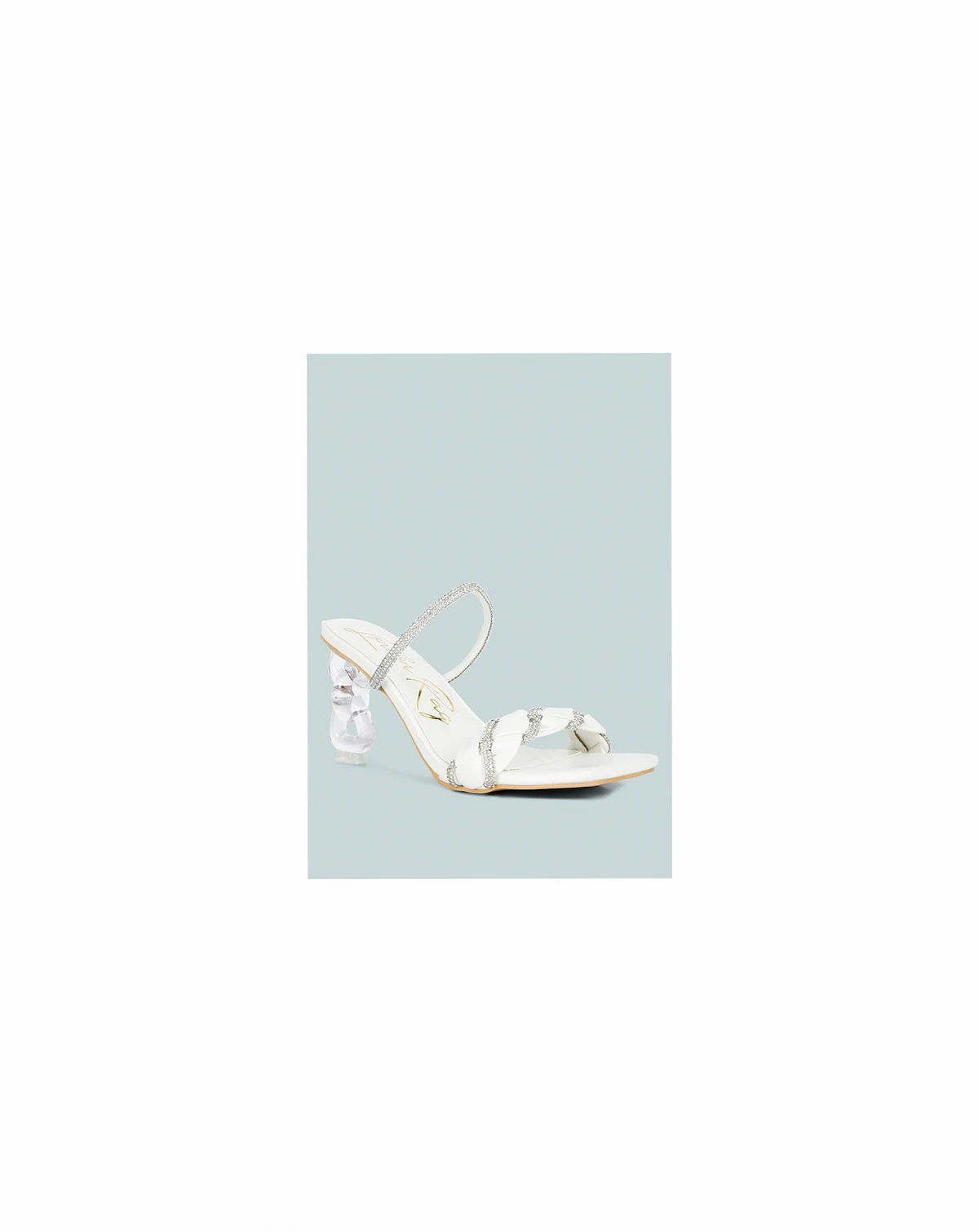 Embellished with diamante details on an elasticated strap, these mid-heel sandals are curated to be your favorite party footwear! These beauties come with little shiny rhinestones on the front knot detail strap, while the chain detailing on the mid heel is appropriate to label it your go-to shoe for all occasions! Type: Heel Sandals Upper Material: Faux Leather Light Cushion Insole Outer Sole: Rubber Chain Detail Mid Heels Open Square Toe Diamante Detail Knot Strap Clear Chain Mid Heel SH3181