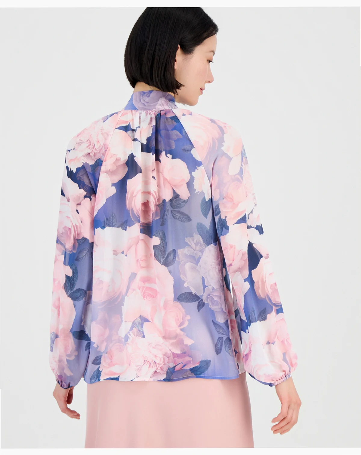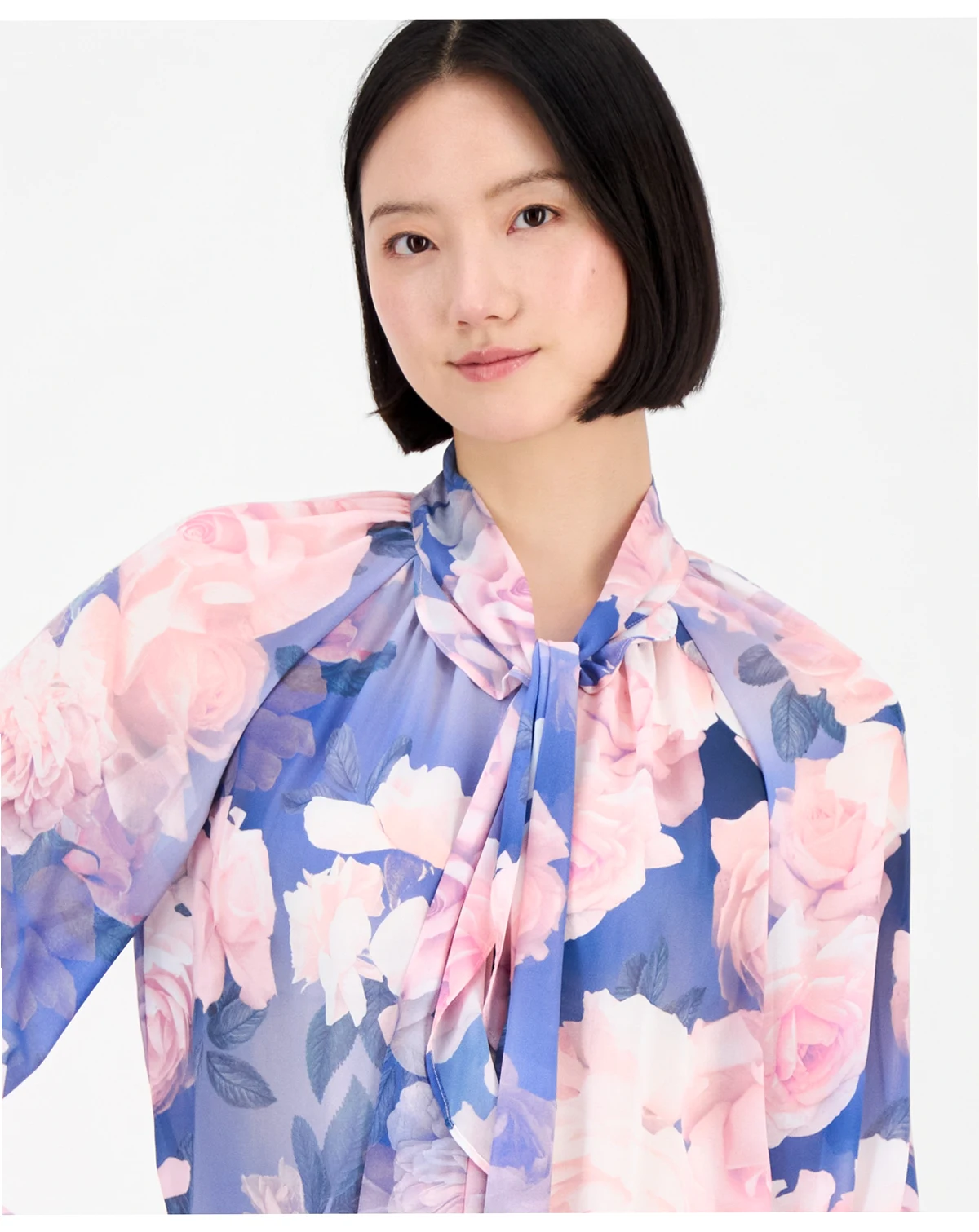 Women's Tie-Neck Blouson-Sleeve Blouse