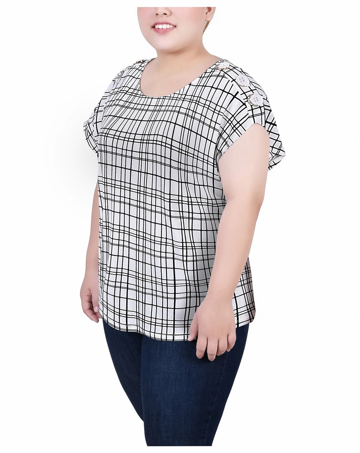 Basic but not boring-that's what this top is from NY Collection. Buttons highlight the shoulders.